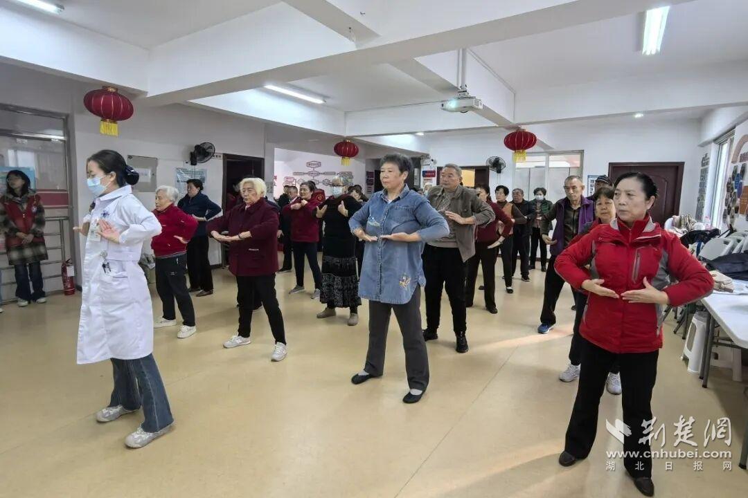 “雙手托天理三焦,左右開弓似射雕……”伴隨著舒緩柔美的古韻琴聲,醫院義診團隊現場帶領華中師范大學家屬區的居民練習中醫傳統養生功法“八段錦”,將一招一式細致拆解,講解清晰明了,讓大家在動靜結合中感受氣血流通,體驗中醫養生文化的獨特魅力。現場居民紛紛表示,一套八段錦做下來,全身暖和,感覺筋骨都舒展了,整個人精神許多,很適合日常鍛煉。