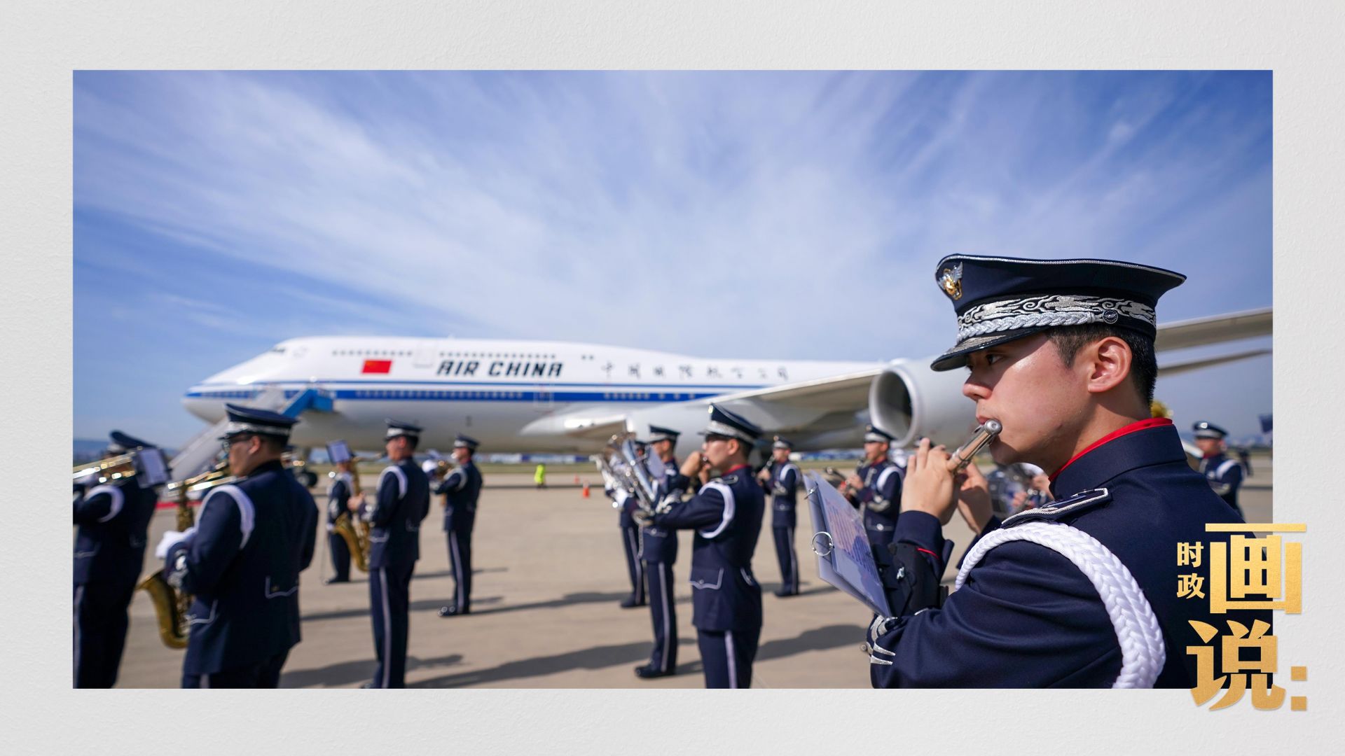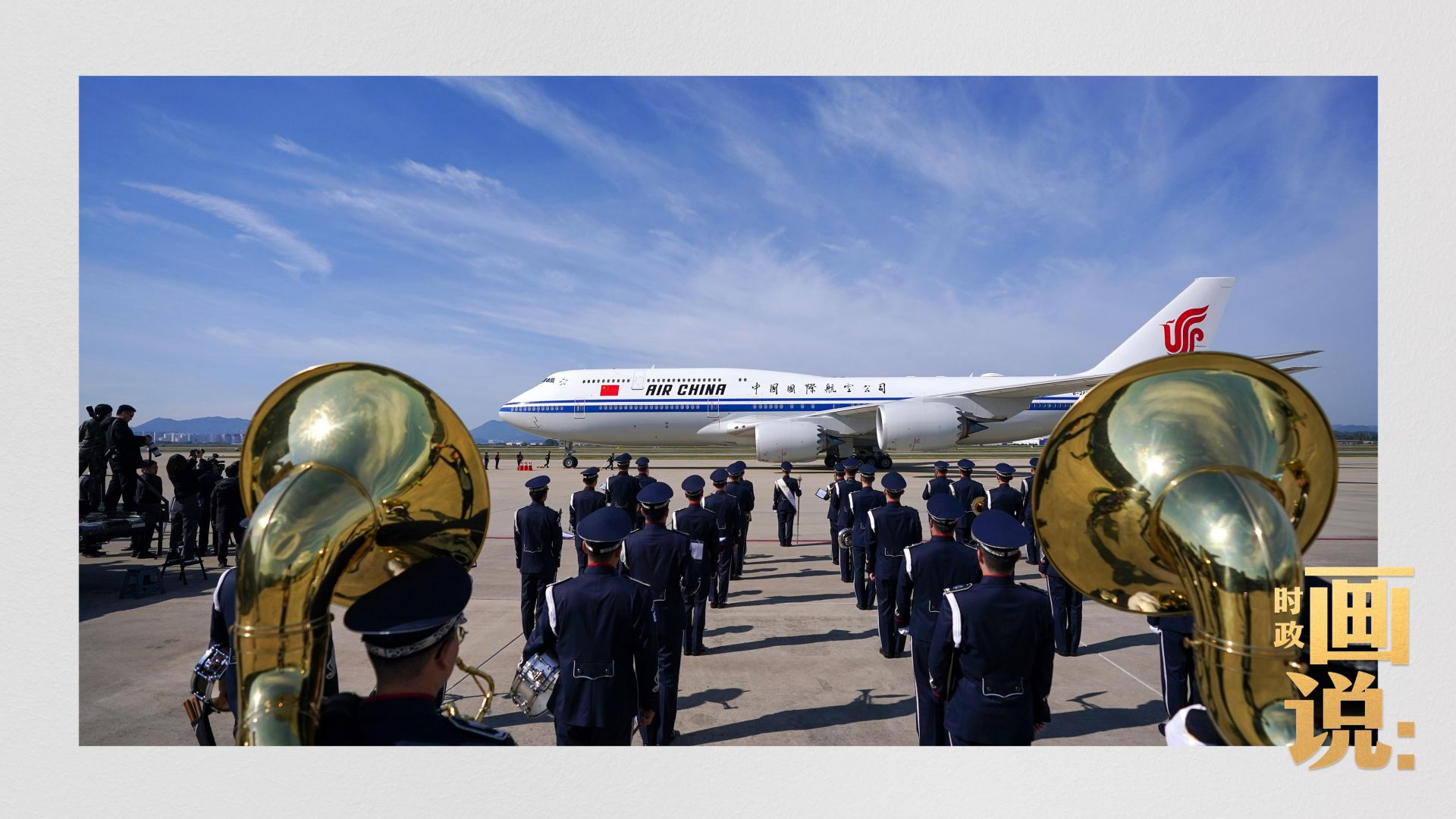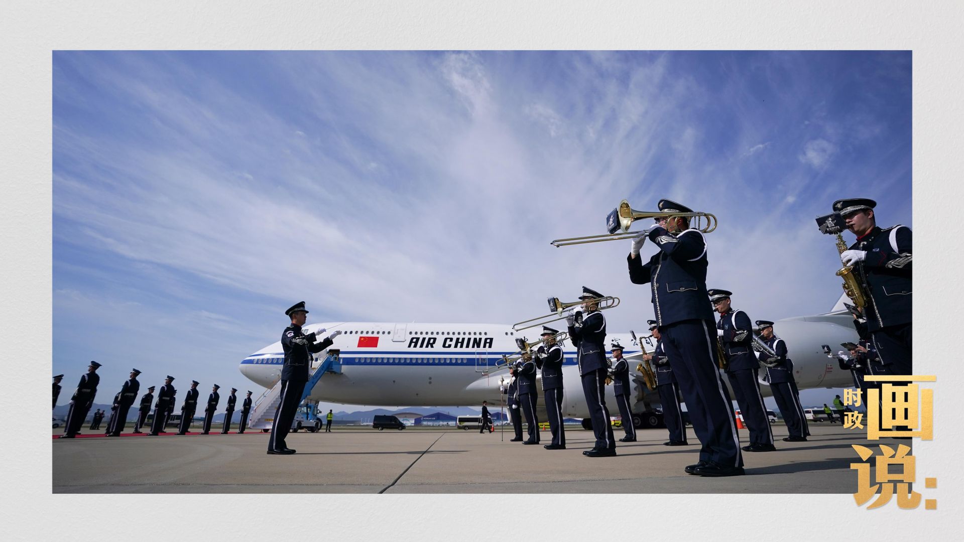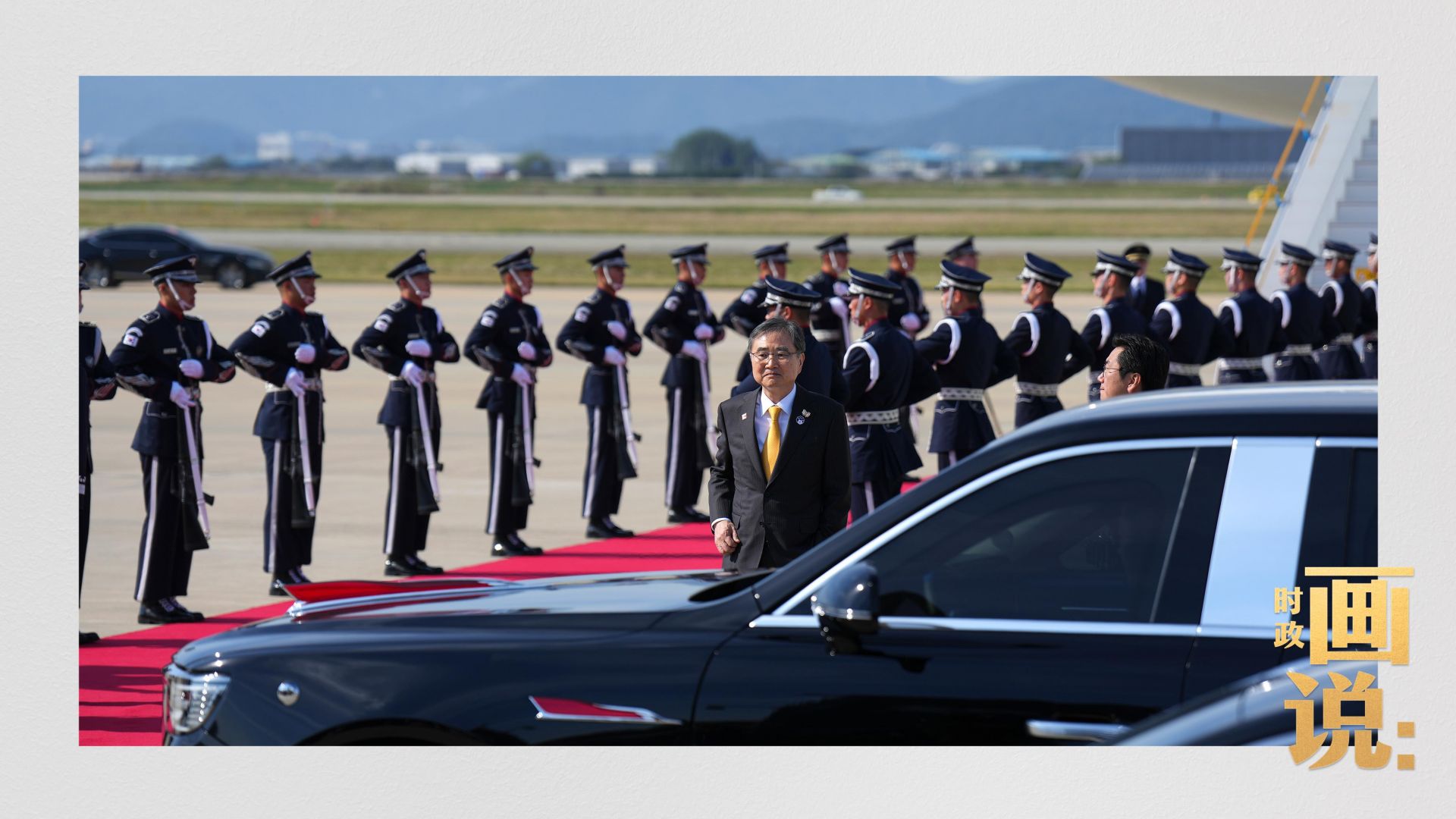 習(xí)近平抵達(dá)釜山金海國(guó)際機(jī)場(chǎng)時(shí),韓國(guó)外長(zhǎng)趙顯等高級(jí)官員熱情迎接。禮兵分列紅地毯兩側(cè)致敬,軍樂團(tuán)演奏行進(jìn)樂,機(jī)場(chǎng)鳴放21響禮炮。