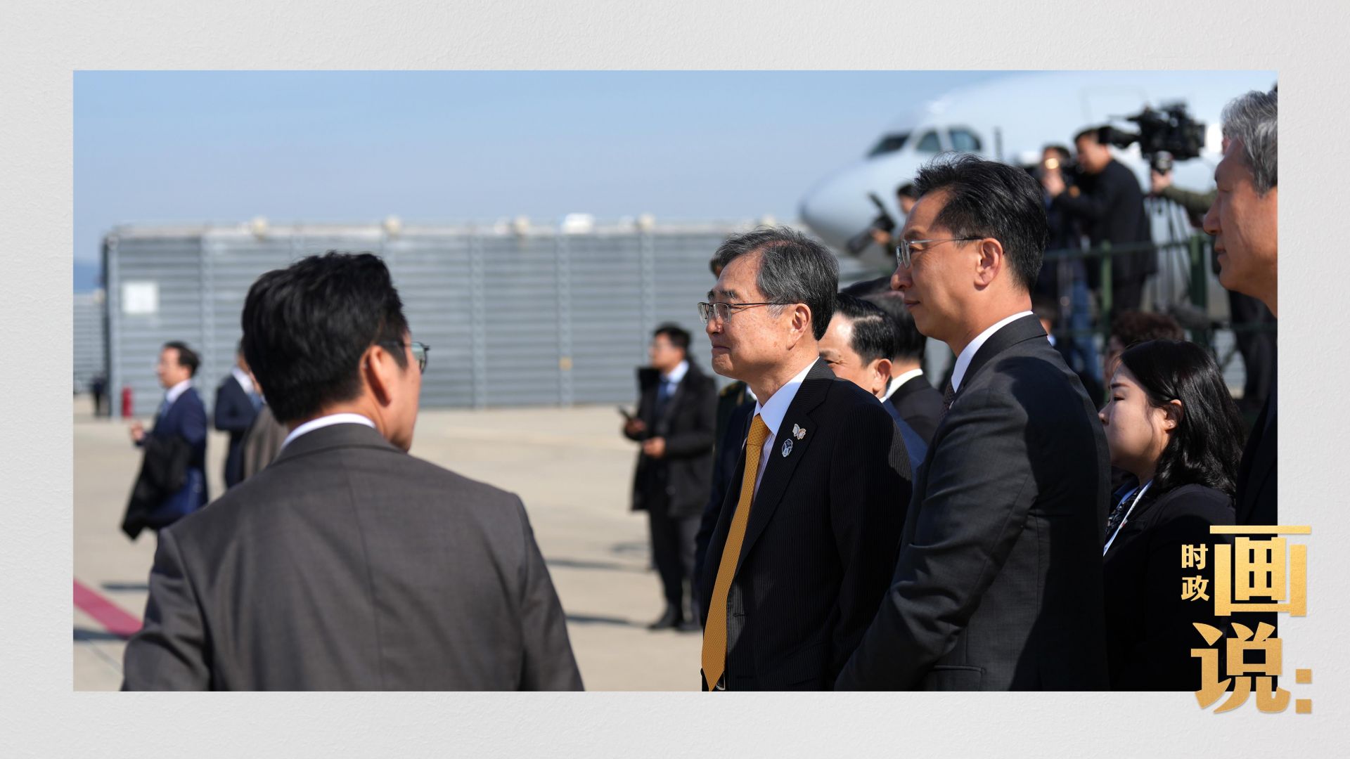 △韓國(guó)外交部長(zhǎng)趙顯在釜山金海國(guó)際機(jī)場(chǎng)熱情迎接習(xí)近平主席