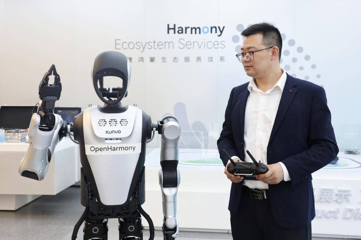 全國首款搭載鴻蒙系統的人形機器人正在調試中。(湖北日報全媒記者 陳少哲 攝)