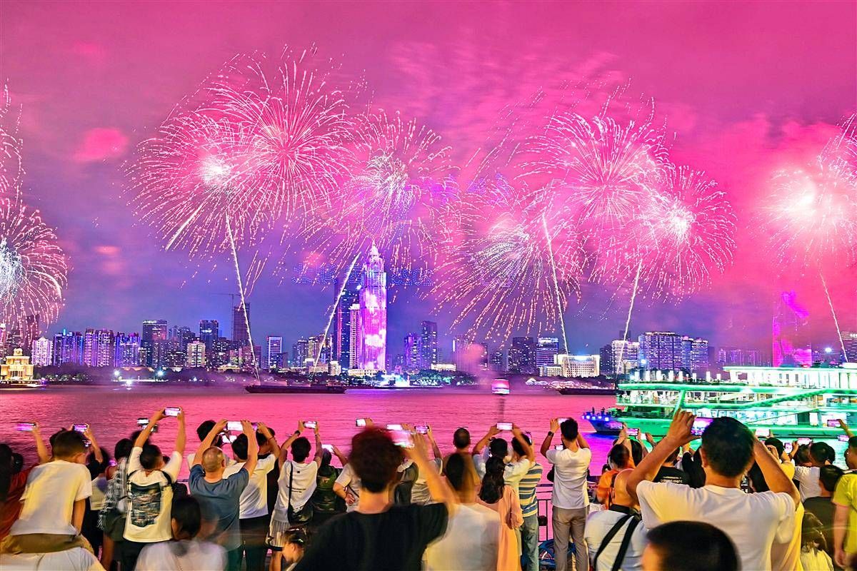 攝影發燒友范作金、羅海潤提前兩天在長江兩岸選點,最終選定武昌江灘,他們說:“武昌江灘視野開闊無遮擋,對面漢口高樓密集,能完整呈現表演與城市天際線的交融,更能凸顯武漢的氣勢。”市民趙妤去年拍攝長江文化藝術季開幕式的照片,登上《大眾攝影》雜志,今年她又早早選好拍攝點:“太震撼了,希望明年有機會再來拍。”更多的市民和游客舉起手機,照片、實況動圖、短視頻、長視頻,社交媒體上花樣繁多的同題美圖,讓外地人、外國人實名羨慕了。國外友人Edson P Bautista在湖北日報海外賬號的評論區留言:“Nice firework my friend”(我的朋友,這煙花太棒了)。俄羅斯女孩@超愛麗娜在中文社交平臺分享了自己的觀禮感受:“說實話,我真的很羨慕中國人。”