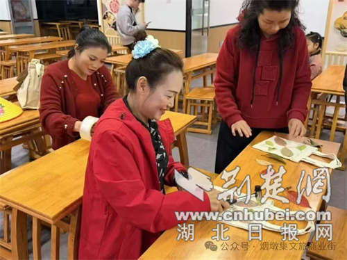 活動期間,煙墩集商業街的“非遺里的荊門”體驗中心也向漳河鎮社區居民免費開放。市民們可參觀非遺文化展館,并親身參與拓印制作體驗。一幅幅圖案在手工拓印中躍然紙上,讓參與者在動手創作中感受荊門非遺文化的獨特魅力與傳承溫度。
