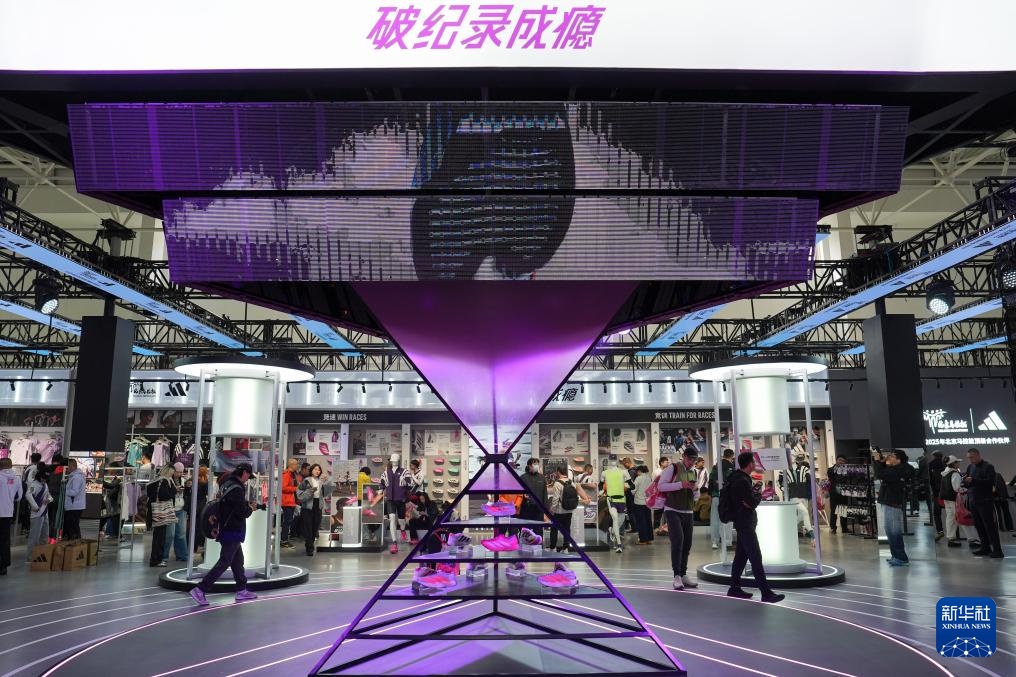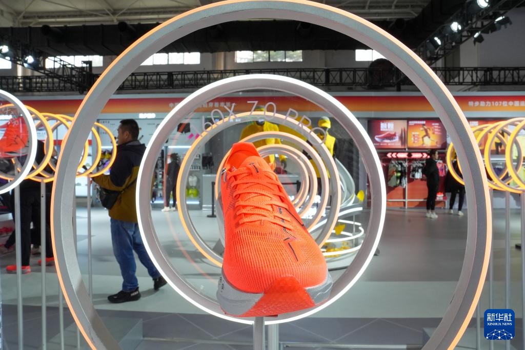 這是在2025北京馬拉松博覽會上展出的一款國產跑鞋(10月30日攝)。