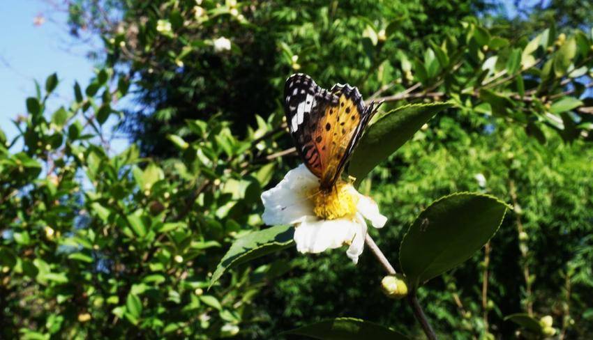 湖北日?qǐng)?bào)客戶端訊(通訊員杜雪平、覃春玲)10月30日,迎著久違的秋陽(yáng)走在鶴峰縣容美鎮(zhèn)康嶺村一組的鄉(xiāng)間小路上,潔白的茶花、粉紅的菊花競(jìng)相綻放,就在這紅綠白交織的花叢里,幾只彩蝶的翅尖沾著茶花的白、菊花的粉,繞著花瓣翩翩起舞,把靜態(tài)的秋景舞成了一幅靈動(dòng)的畫。