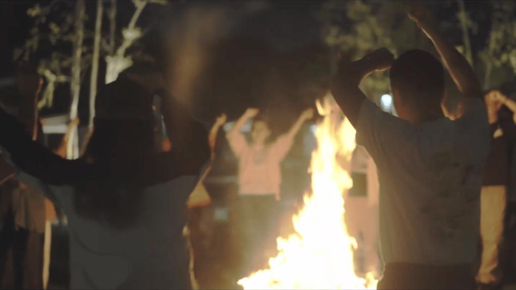 晚間,蘇比努爾·阿卜杜麥麥提與農莊同事、住客篝火共舞。受訪者供圖