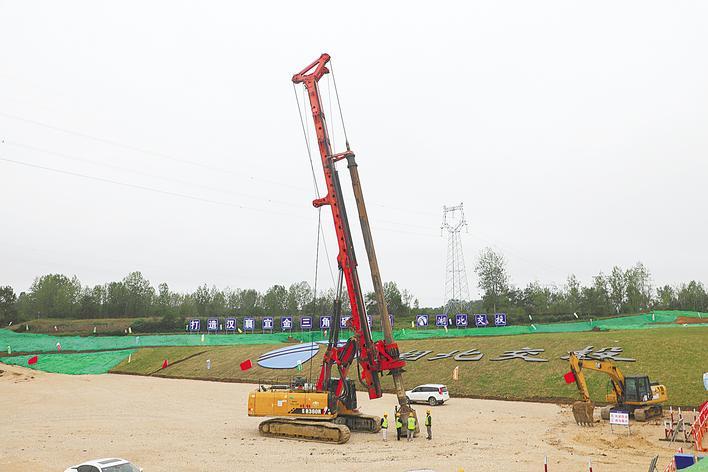 橋梁樁基施工。(湖北日報全媒記者 戴輝 攝)