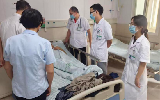 醫護團隊了解患者恢復情況。(通訊員供圖)
