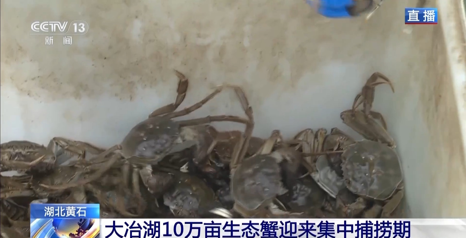 這段時間,湖北黃石大冶湖的10萬畝螃蟹迎來集中捕撈,工人師傅們正在忙著捕撈分揀,現場一片豐收的景象。