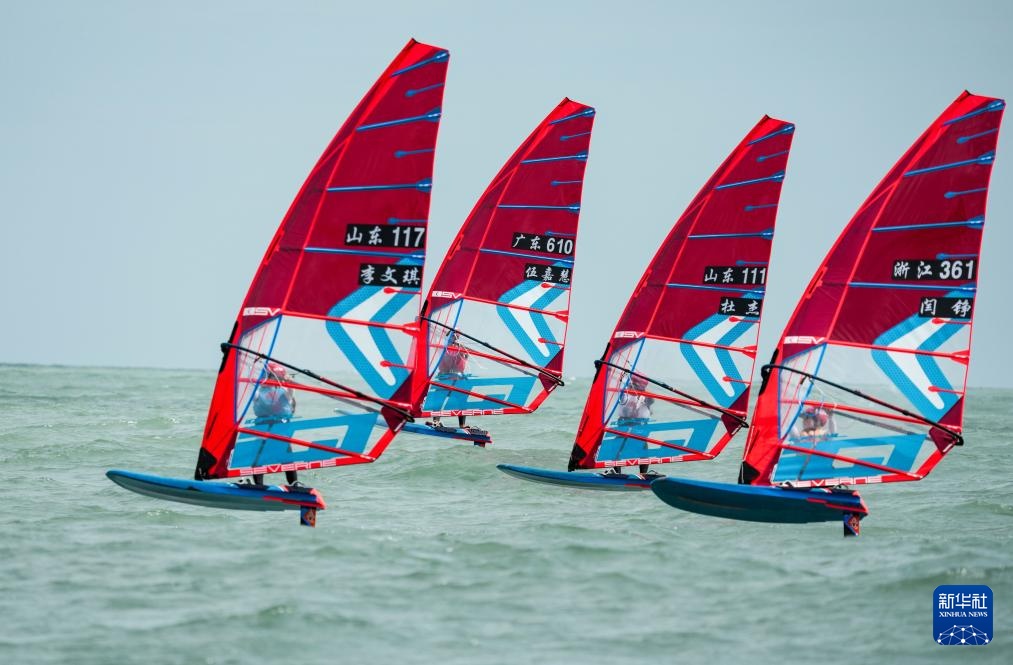 10月30日,廣東隊選手伍嘉慧(左二)在女子水翼帆板級比賽中。最終,她獲得亞軍。