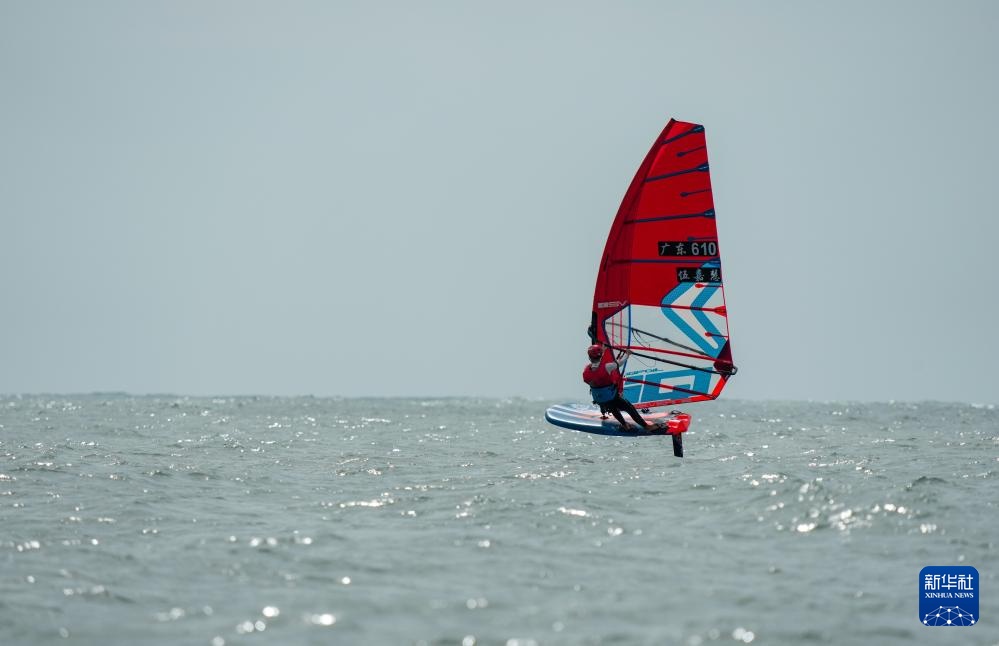 10月30日,廣東隊選手伍嘉慧在女子水翼帆板級比賽中。最終,她獲得亞軍。