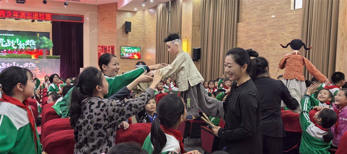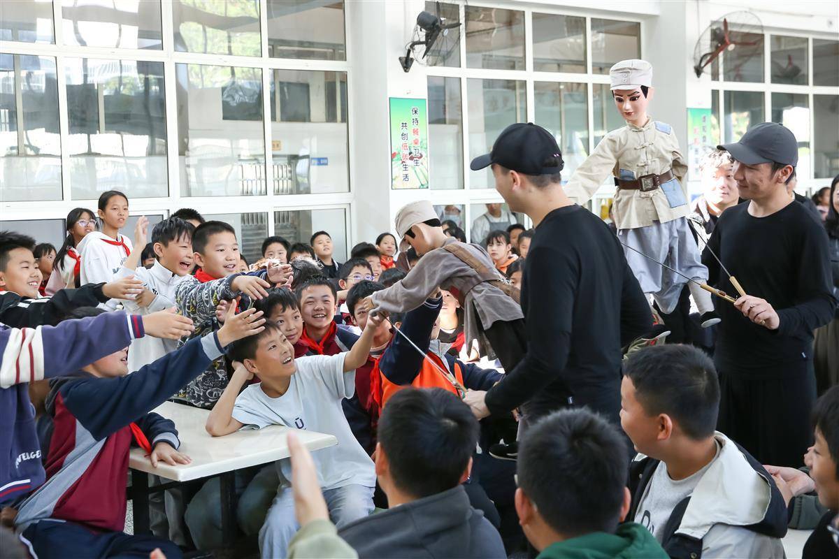 湖北日報訊(見習記者甄子萱、通訊員武小青、楊青)“我要跟你們走,打鬼子報仇!”10月30日下午,武漢市光谷實驗小學新竹路校區禮堂內,“2025年武漢市青少年演出進校園活動”帶來的木偶戲《抗戰小英雄》正在上演,“火燒竹籬笆”“智擒狗漢奸”等情節牢牢抓住了孩子們的目光。