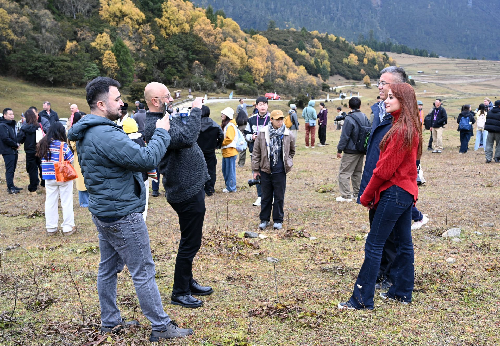 2025·中國西藏發展論壇中外嘉賓在魯朗高山牧場參觀。 本報記者 王敏 攝