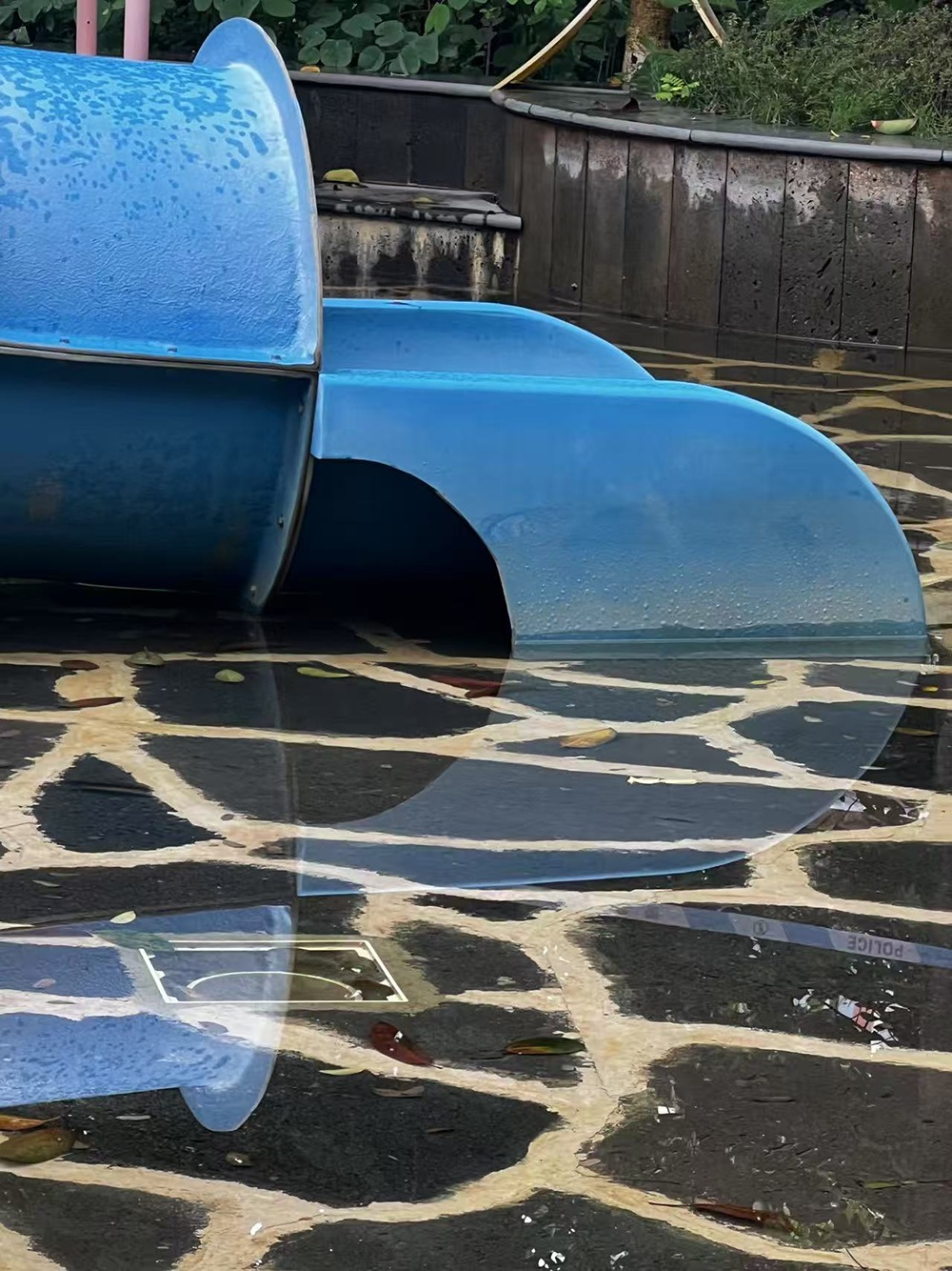 媽媽發(fā)現(xiàn),悅悅身上那件顏色鮮艷的碎花連體泳衣,正隱約出現(xiàn)在兩個(gè)小女孩身旁的水下 —— 悅悅的身體呈后仰狀態(tài)沉在水里。起初,媽媽以為孩子只是不小心滑倒了,便立刻下水想扶她起來(lái),可當(dāng)她伸手去拉時(shí),卻發(fā)現(xiàn)根本拉不動(dòng)。仔細(xì)一看才驚覺,悅悅的左腿深深陷進(jìn)了一個(gè)水管里。