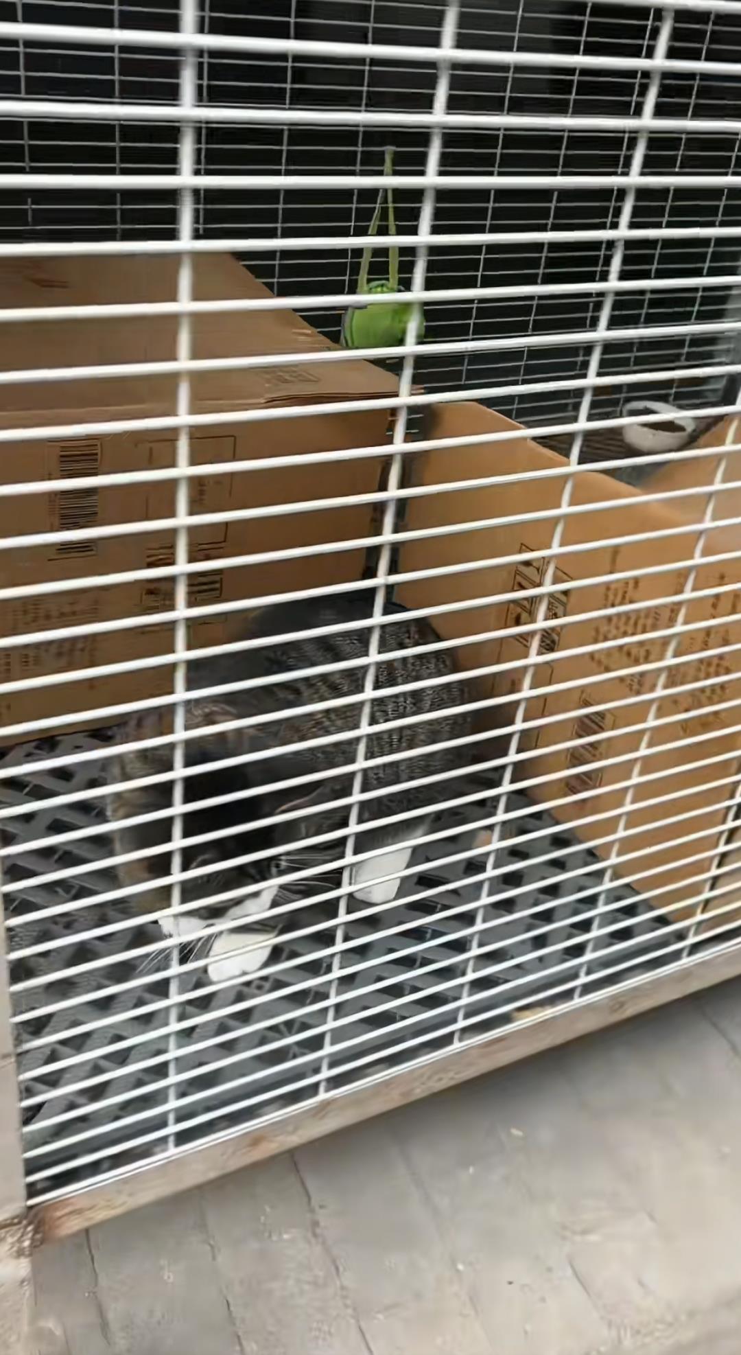 網友拍攝的視頻顯示,她在遼寧撫順市的一家汽車銷售4S店修車時,發現該銷售店一側放置了很多鐵籠子,里面養了一些流浪貓。同時,銷售店一旁用鐵絲網和柵欄圈起來的院內,還有一些流浪狗和馬犬,看到該網友靠近,它們紛紛跑上前嚎叫打招呼。記者注意到,每個鐵籠中都放置了紙箱,貓糧碗和水。