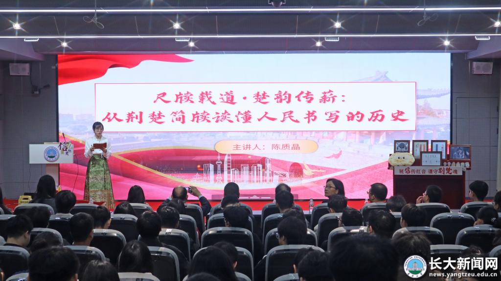 10月28日晚,《信·荊楚》第三季第三講“尺牘載道·楚韻傳薪—從荊楚簡牘讀懂人民書寫的歷史”開講。長江大學馬克思主義學院青年教師陳質晶、荊州市文物保護中心趙陽博士與荊天高莫斯文化有限公司董事長牟菲聯袂授課,帶領學生從荊楚簡牘中讀懂“人民書寫的歷史”。