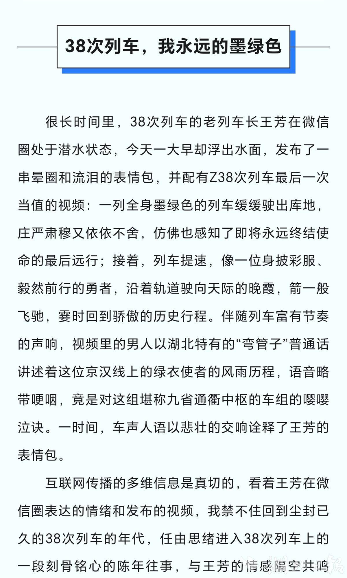 向陽(yáng)此次獲獎(jiǎng)的散文《38次列車(chē),我永遠(yuǎn)的墨綠色》,刊于《長(zhǎng)江叢刊》2024年4月上旬刊,文章講述了1997年作者在赴京的38次列車(chē)上,因急病發(fā)作得到列車(chē)長(zhǎng)、醫(yī)護(hù)人員等一群人愛(ài)心救助的感人往事。