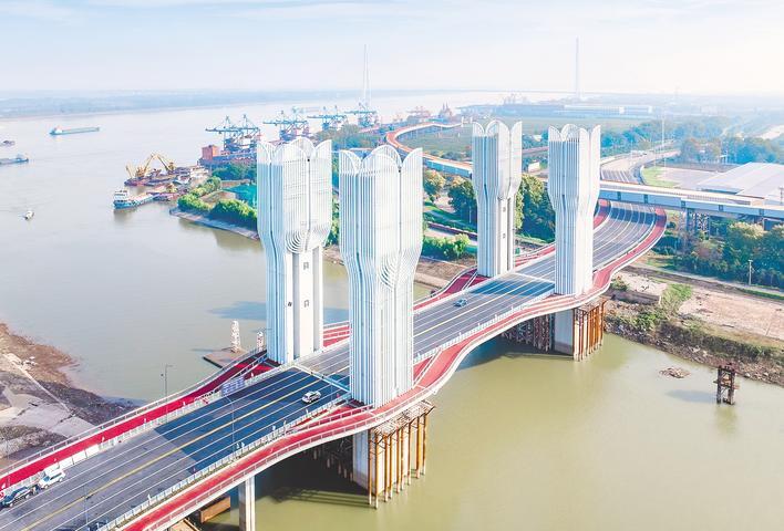 湖北日報全媒記者現場看到,四個白色塔柱矗立水面,直入云霄,整體造型如同舒展的樹形,散發著藝術氣質。橋面機動車道為雙向6車道,兩側設置人行道、非機動車道實現人車分離。控制中心設在橋下,24小時監控橋面車輛及行人安全。
