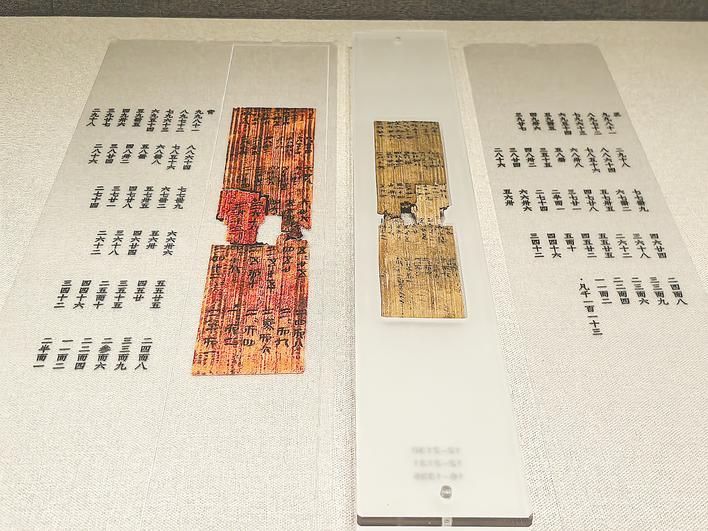 曾侯乙墓戰(zhàn)國(guó)早期竹簡(jiǎn)、睡虎地秦簡(jiǎn)、里耶秦簡(jiǎn)、居延漢簡(jiǎn)、敦煌漢簡(jiǎn)、走馬樓三國(guó)吳簡(jiǎn)、武威旱灘坡晉簡(jiǎn)……展覽以簡(jiǎn)牘的演進(jìn)為線索,展現(xiàn)戰(zhàn)國(guó)至東晉近千年間簡(jiǎn)牘作為主流書(shū)寫(xiě)載體的漫長(zhǎng)歷程。展出簡(jiǎn)牘包羅萬(wàn)象、立體豐富,既有治國(guó)經(jīng)緯、法律體系、典籍佚篇、西域故事,更有展現(xiàn)人間煙火的社會(huì)百態(tài)。