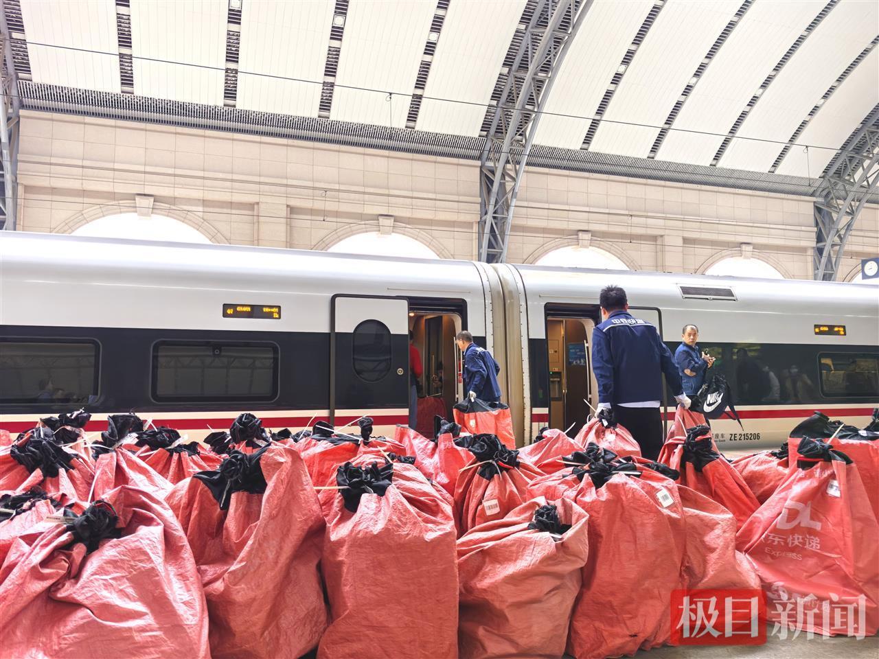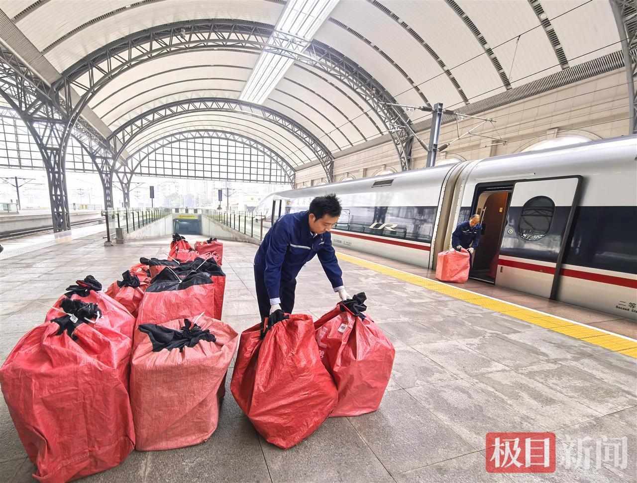11月1日8時57分,G3463次列車裝載著日用品、土特產等多個品類、總重達2噸的快遞物資,從漢口站駛出,一路飛馳奔向成都東站。極目新聞記者從中國鐵路武漢局集團有限公司(以下簡稱武鐵)獲悉,11月1日,“雙11”網購高峰期鐵路快運服務正式啟動。