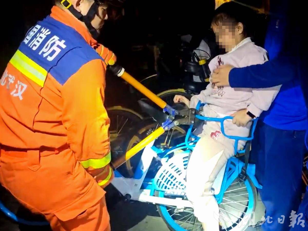 湖北日報訊(記者張競恒、通訊員漢消)本想騎著親子共享單車愜意游覽東湖風光,不料8歲女兒的大腿卻被車后座椅死死卡住,讓張女士一家的周末之旅陷入困境。10月26日傍晚,這驚心一幕就發生在武漢市東湖綠道。接到報警后,武漢市消防救援指揮中心迅速調派華僑城站,出動1輛消防車和5名消防員趕赴現場處置。