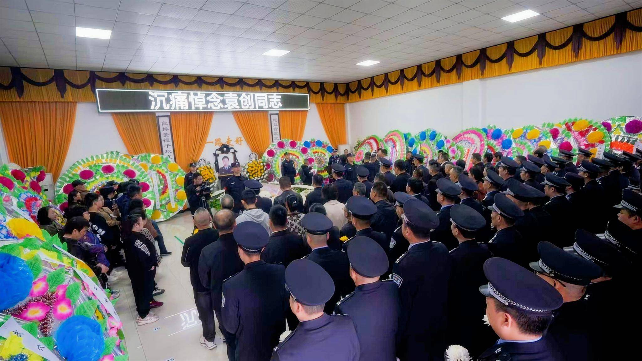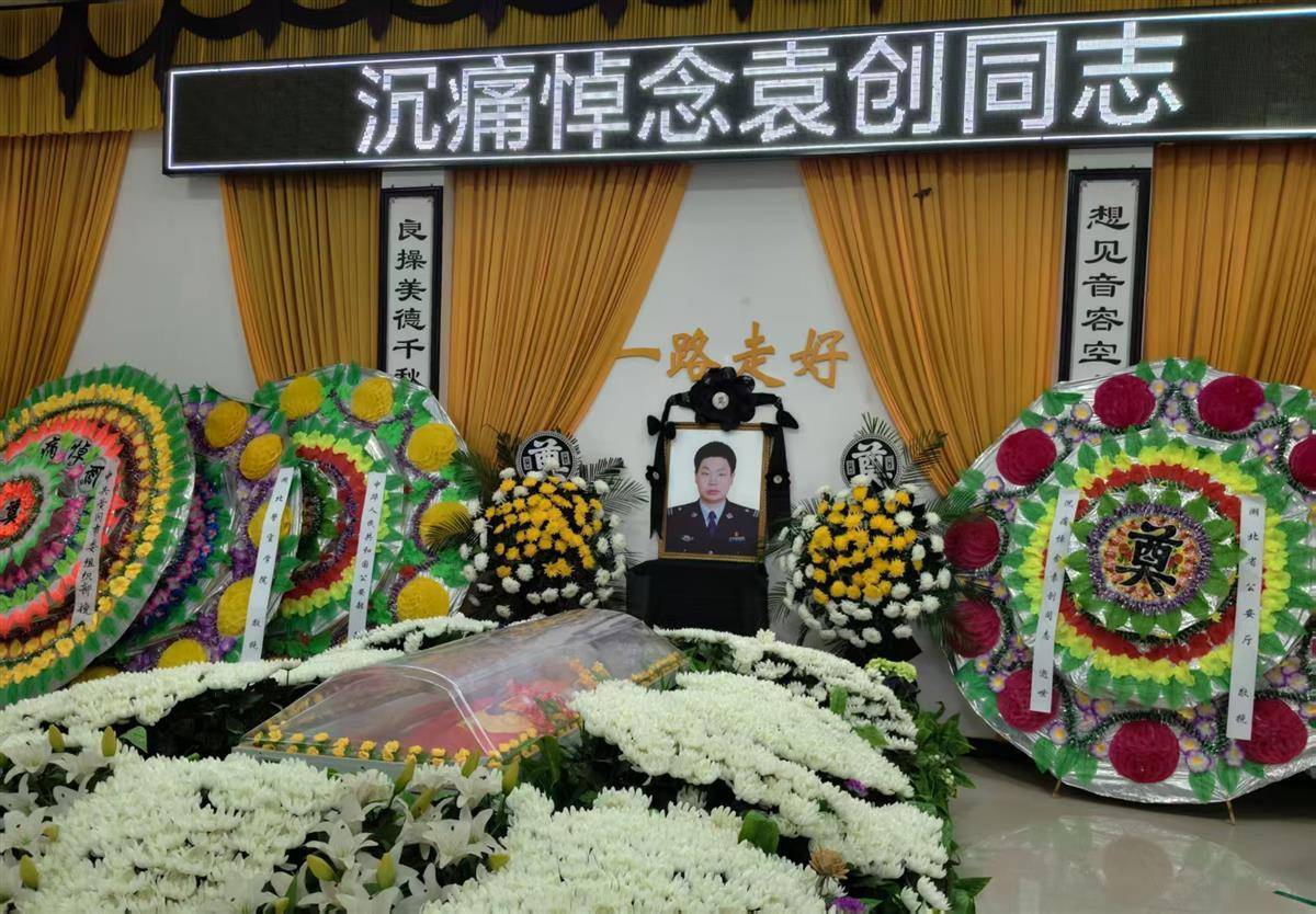 11月1日,英山縣公安局金家鋪派出所所長(zhǎng)袁創(chuàng)遺體告別儀式現(xiàn)場(chǎng)。(通訊員供圖)