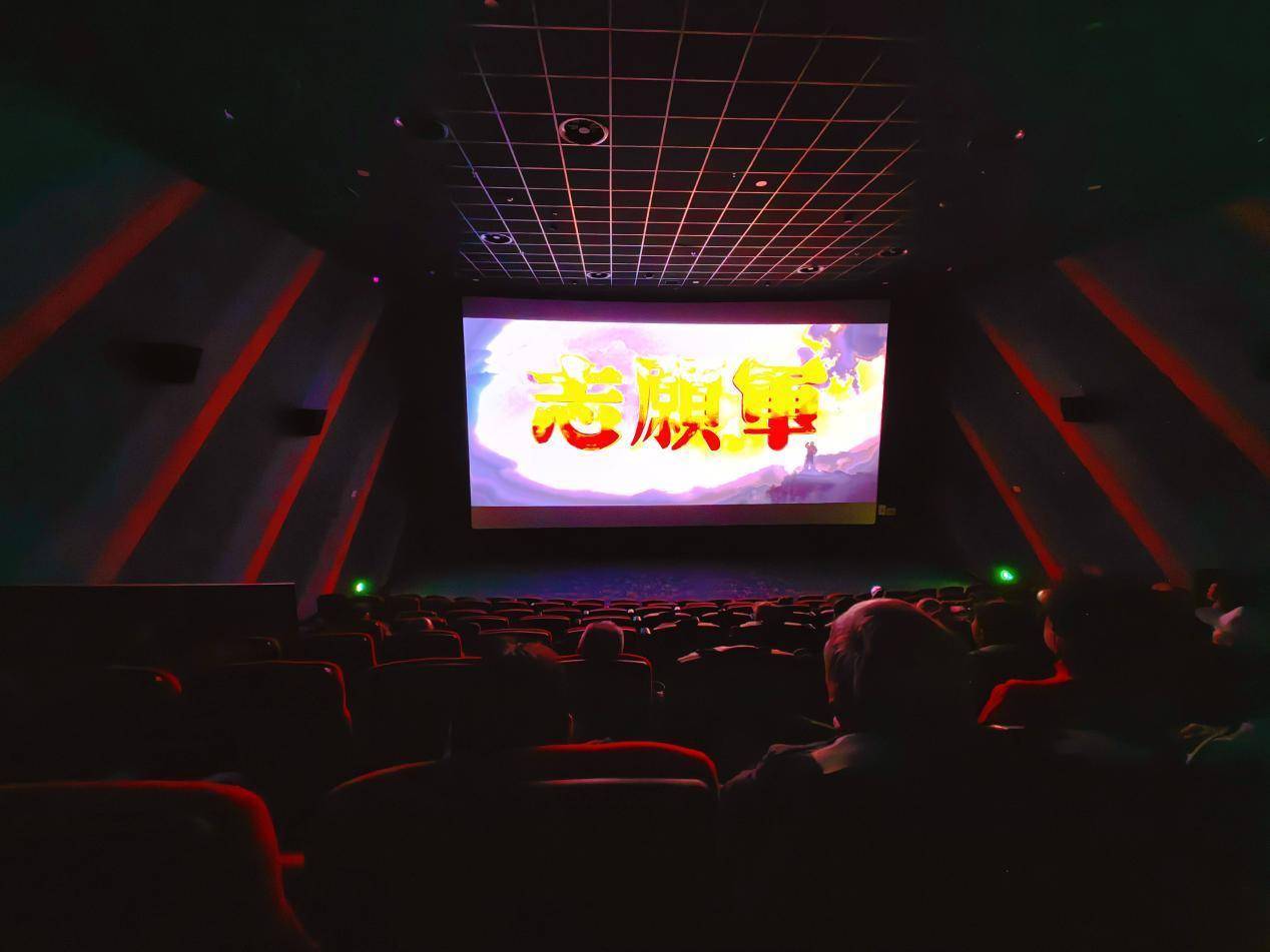 快遞小哥、外賣騎手與黨員代表們一起觀看電影《志愿軍》。