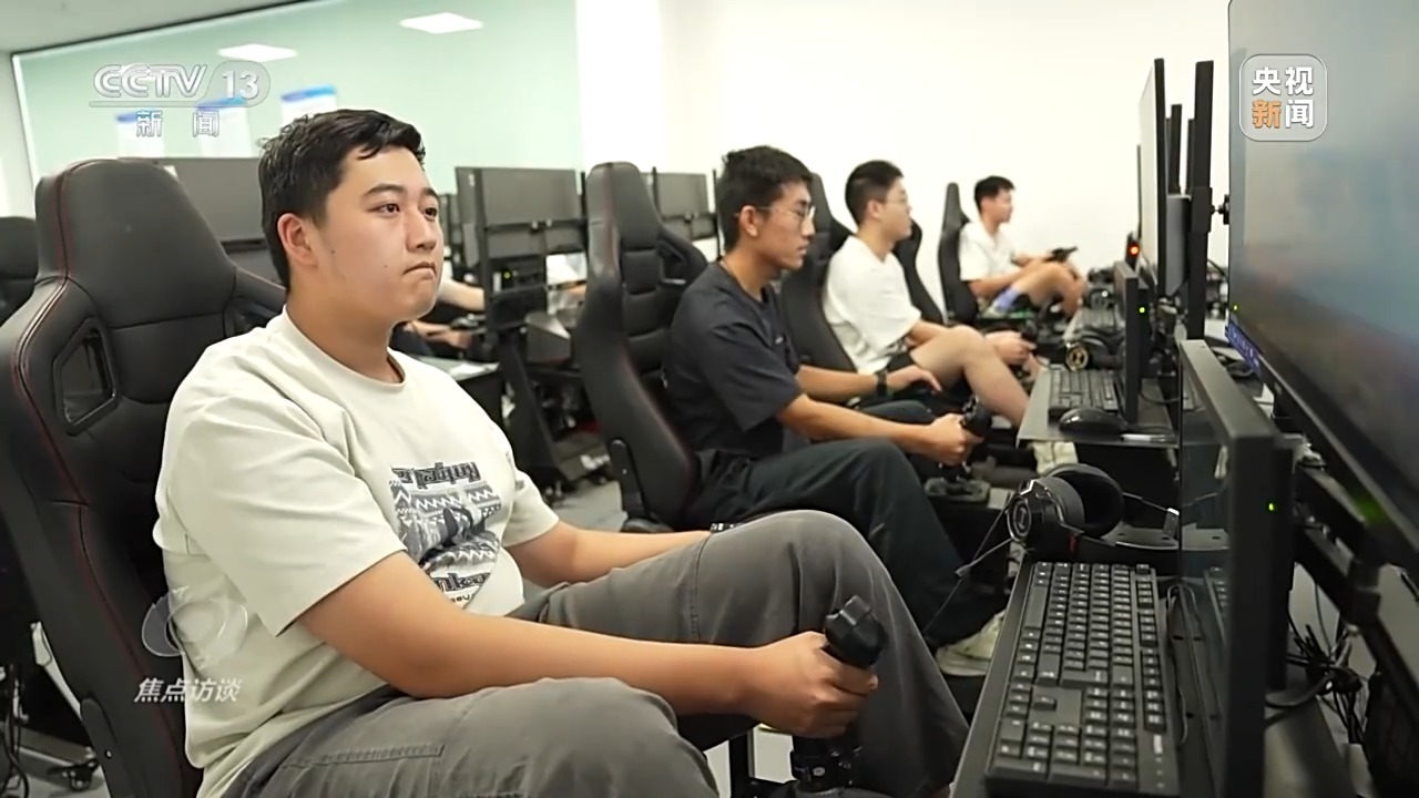 在北京航空航天大學沙河校區,低空技術與工程專業的20多位新生正在進行無人機起飛、側風、順風等五個階段的飛行模擬訓練,通過實操來強化對標準起落航線以及飛行操控規范的掌握。由于是首次訓練,同學們的手指在操縱桿上的調整略顯生澀,屏幕上的航線一度也偏離了預設軌跡。隨后在老師的實時指導下同學們逐段修正航向,慢慢對操作節奏熟悉起來。