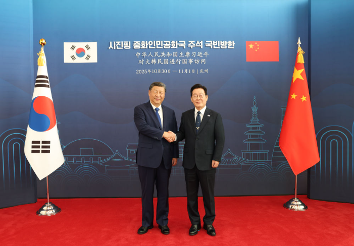 新華社韓國慶州11月1日電 當地時間11月1日下午,韓國總統李在明同中國國家主席習近平在慶州博物館舉行會談。