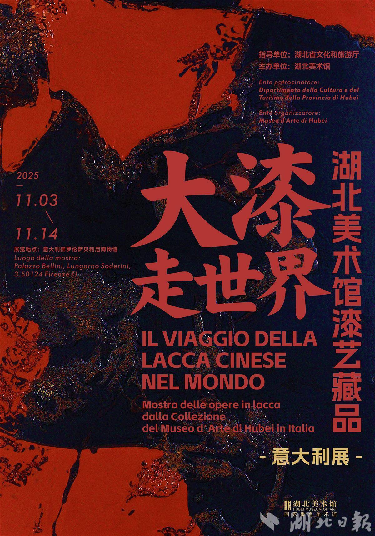 湖北日報訊(記者海冰、通訊員彭蓉)11月3日至11月14日,“大漆走世界——湖北美術館漆藝藏品意大利展”將在意大利佛羅倫薩貝利尼博物館展出。