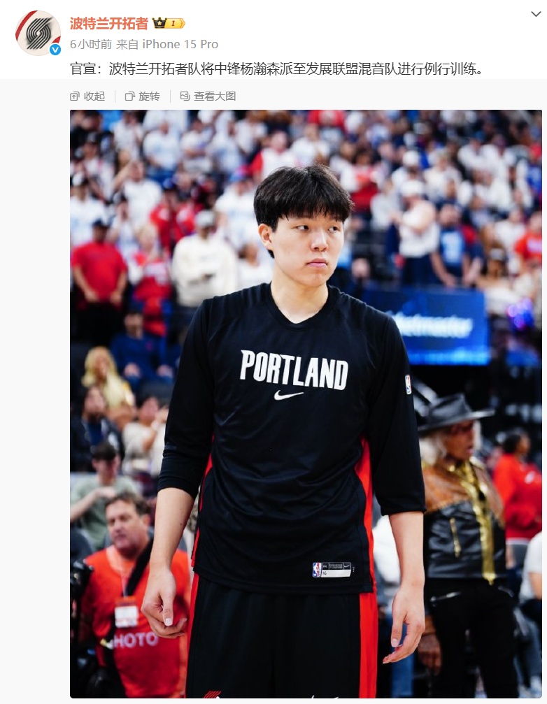 據(jù)開(kāi)拓者另一位隊(duì)記Danny Marang報(bào)道,若之后楊瀚森在開(kāi)拓者的出場(chǎng)時(shí)間有限,那么他本賽季將在兩支球隊(duì)之間頻繁往返。
