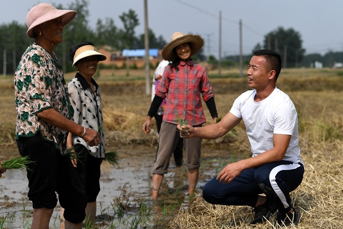“三夏”時節(jié)戴虎在田間與村民們交流。受訪者供圖
