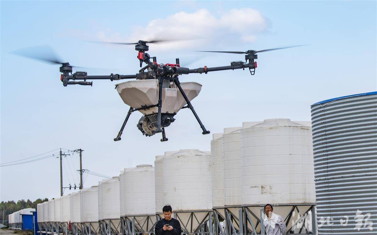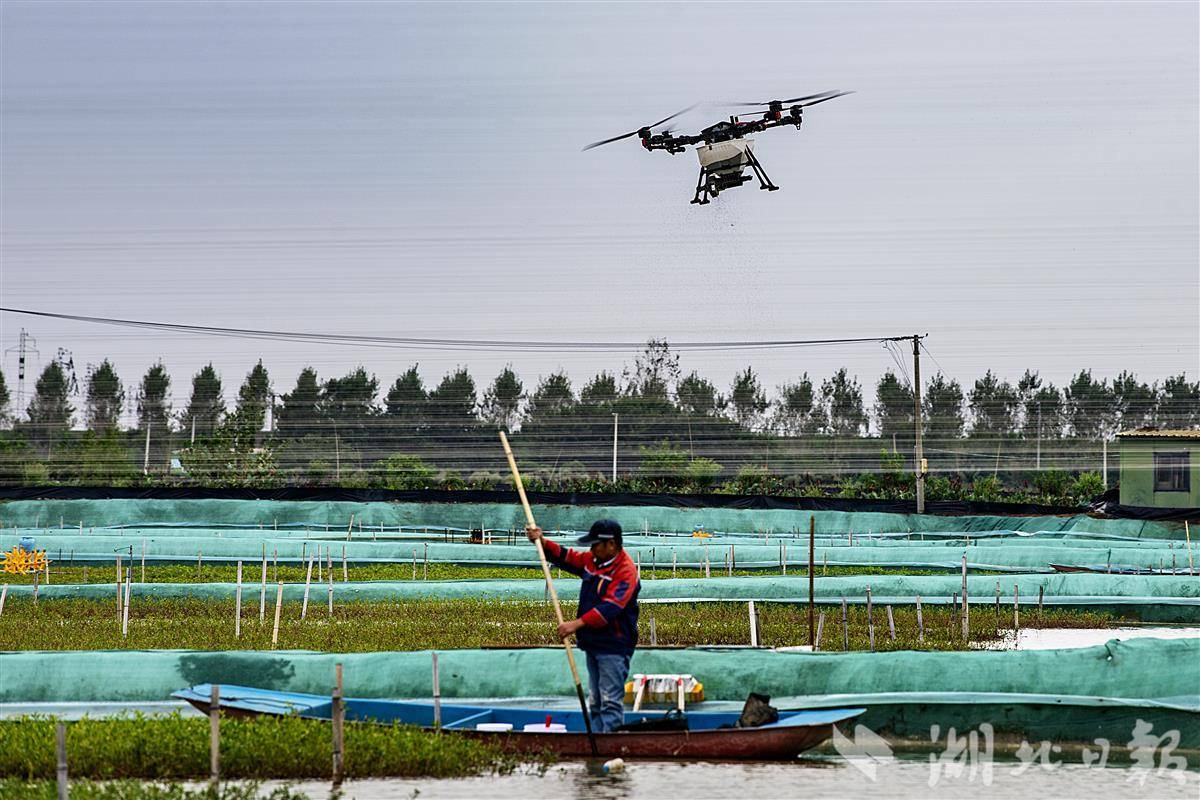 近日,在武漢蔡甸區侏儒山街道東干村的大閘蟹養殖基地,大學生徐順江正通過無人機技術實現大閘蟹投喂。他稱,是在手機上設置無人機的飛行高度、飛行速度、撒播量等來實現大閘蟹投喂、消毒調水及病害防控等環節的自動化操作。該技術通過均勻播撒飼料提升養殖密度,采用“少吃多餐”模式降低浪費,效率較傳統人工提升12倍。