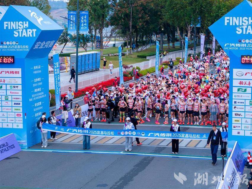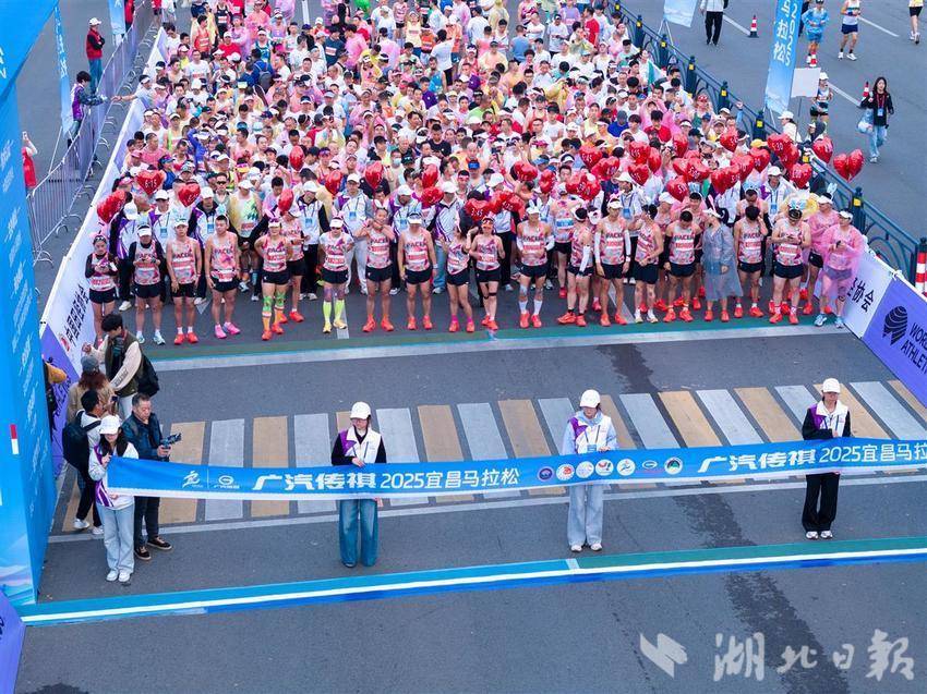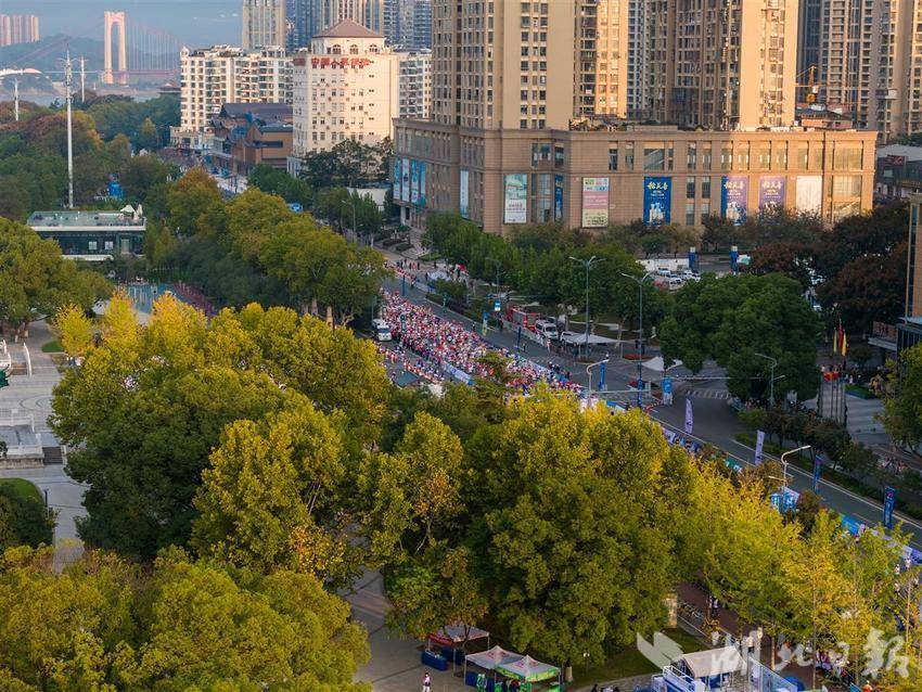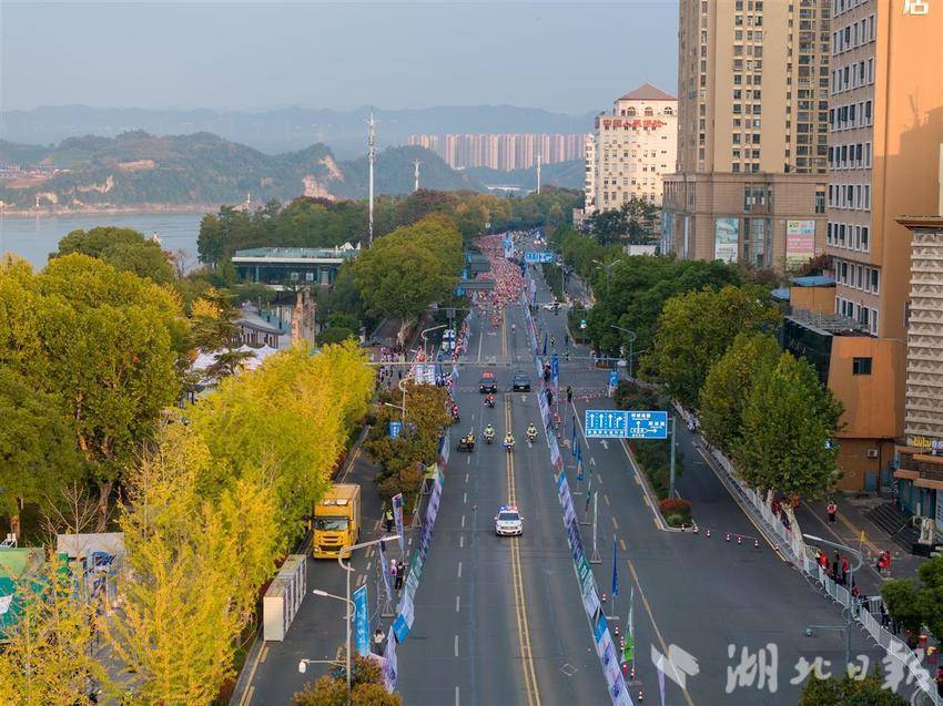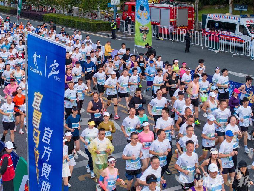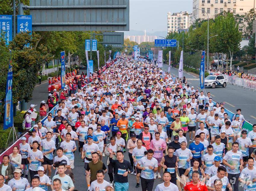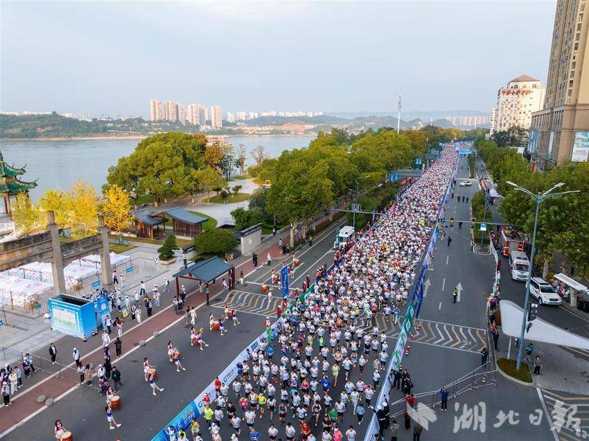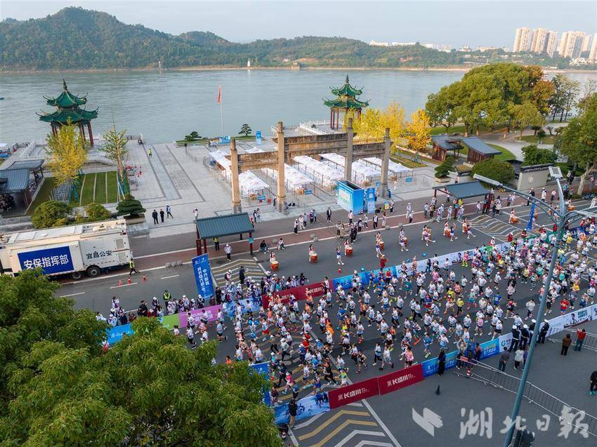 2025宜昌馬拉松今早鳴槍,萬余全馬、半馬跑者沿江開跑,濱江公園見證熱血瞬間。(湖北日報全媒記者 夏曉君 攝)