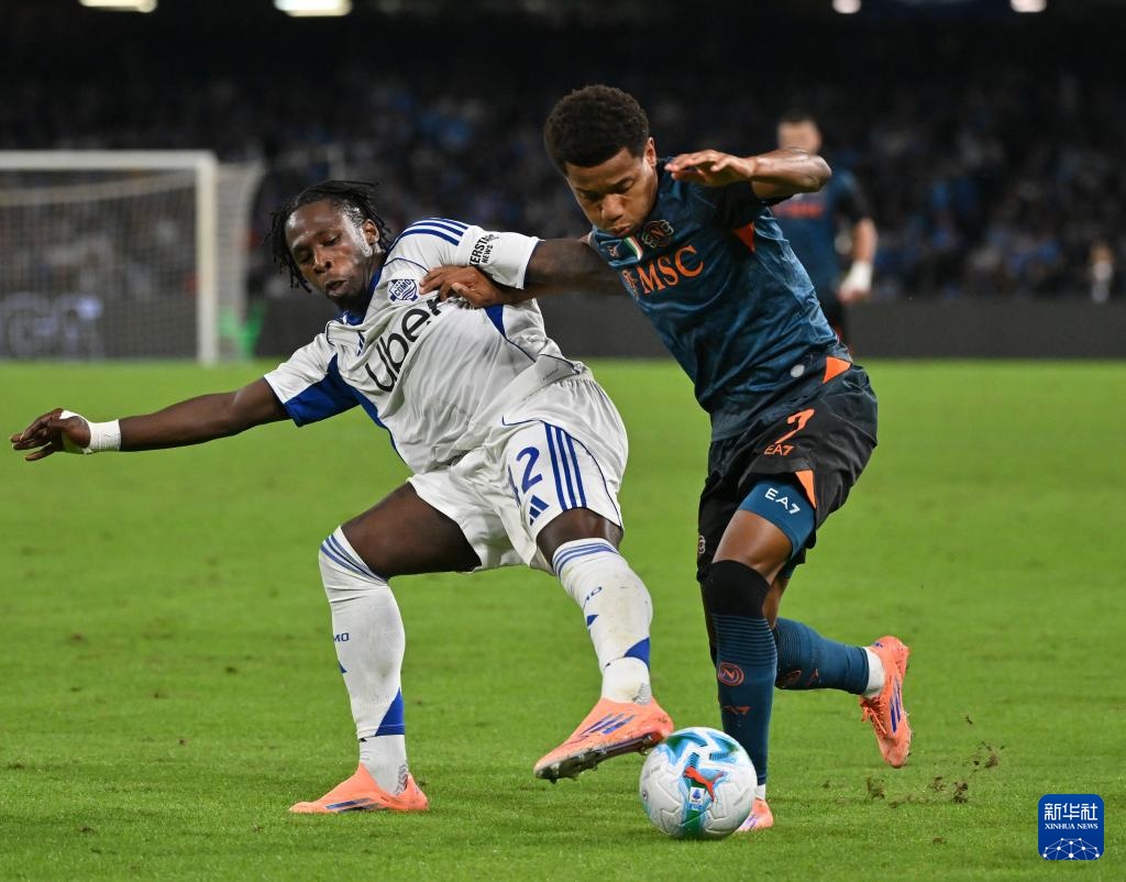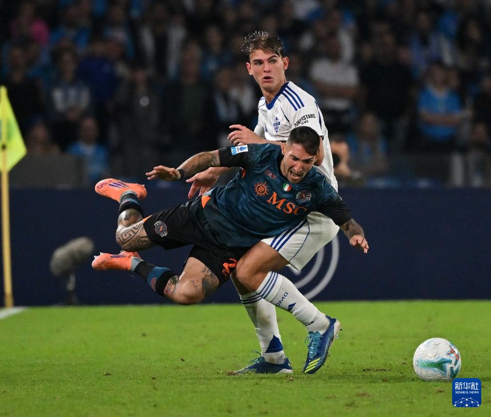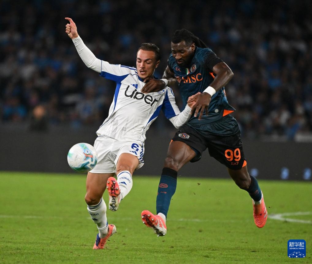 11月1日,那不勒斯隊球員安古伊薩(右)與科莫隊球員卡克雷在比賽中拼搶。
