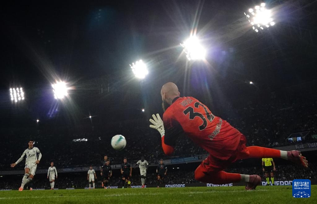 11月1日,那不勒斯隊守門員米林科維奇-薩維奇(右)在比賽中撲出科莫隊球員莫拉塔的點球。