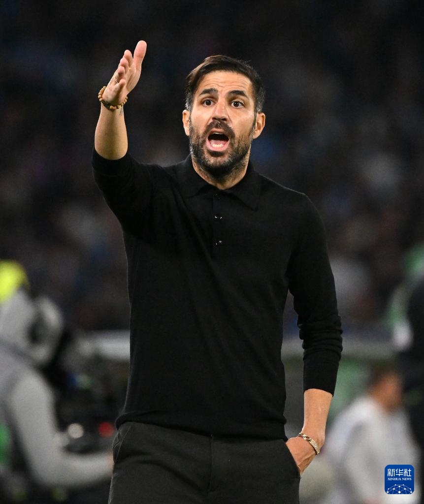 11月1日,科莫隊主教練法布雷加斯在場邊指揮。