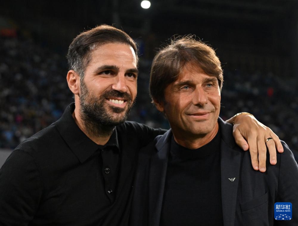 11月1日,那不勒斯隊主教練孔蒂(右)與科莫隊主教練法布雷加斯在賽前合影。