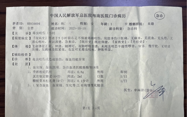 考慮到毒蟲毒性,治療要緊,連女士不想多做爭執,“最后是給我們叫了一輛私家車,找了其他泳池的救生員,跟我們一塊去醫院,醫生給開了藥,做了傷口處理,需要連續3天做抽血化驗。”