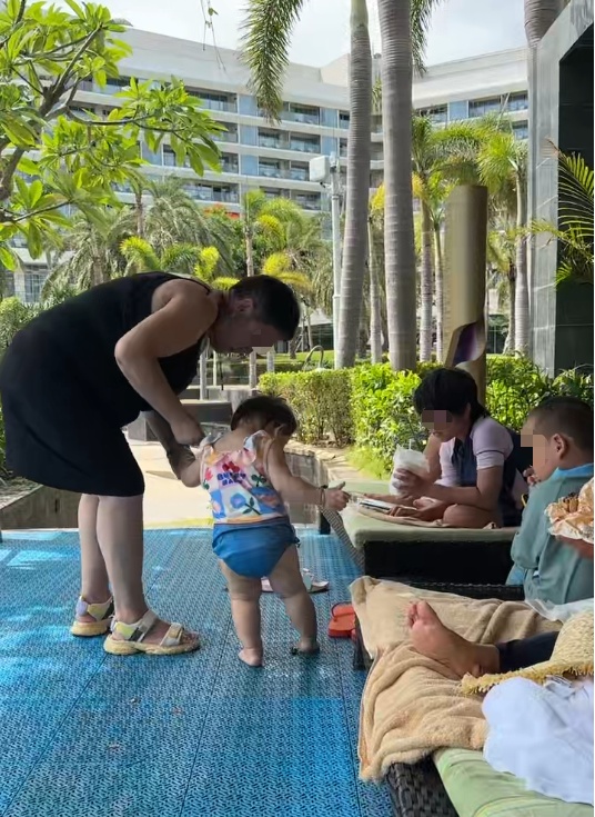 連女士稱,10月10日下午1點半左右,她和1歲孫女在酒店泳池游泳上來,她領著才學會走路的孫女就在泳池邊遭遇毒蟲的襲擊。