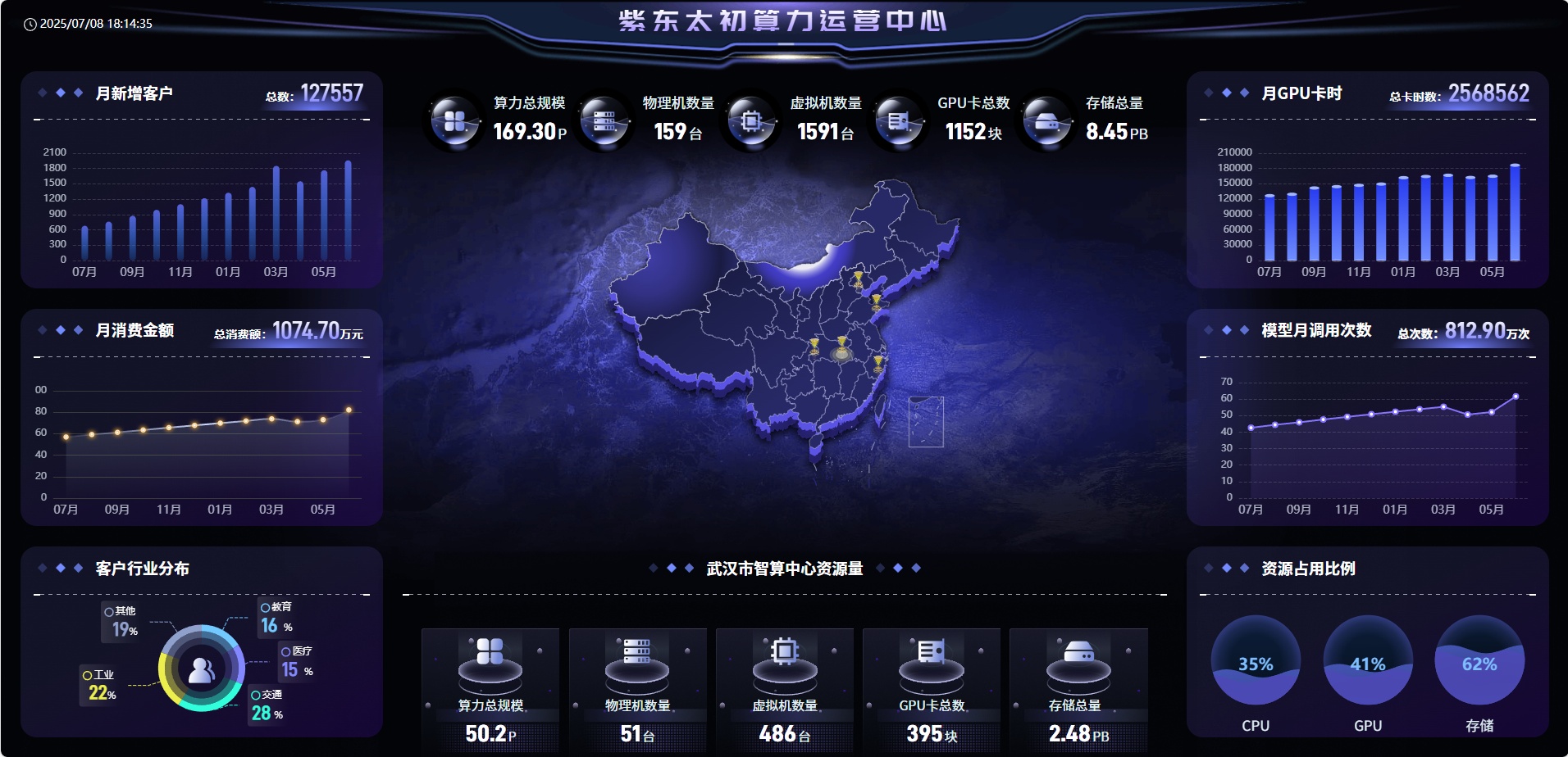 在武漢人工智能研究院展廳,“紫東太初云”平臺(tái)的實(shí)時(shí)數(shù)據(jù)面板上,超百個(gè)應(yīng)用場景的動(dòng)態(tài)數(shù)據(jù)不斷刷新。這個(gè)國內(nèi)首個(gè)全棧國產(chǎn)化萬卡智算云,正讓AI 技術(shù)加速滲透到產(chǎn)業(yè)肌理。