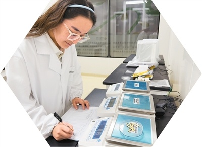 科研人員對(duì)種質(zhì)資源進(jìn)行考種、稱(chēng)取種子千粒重。