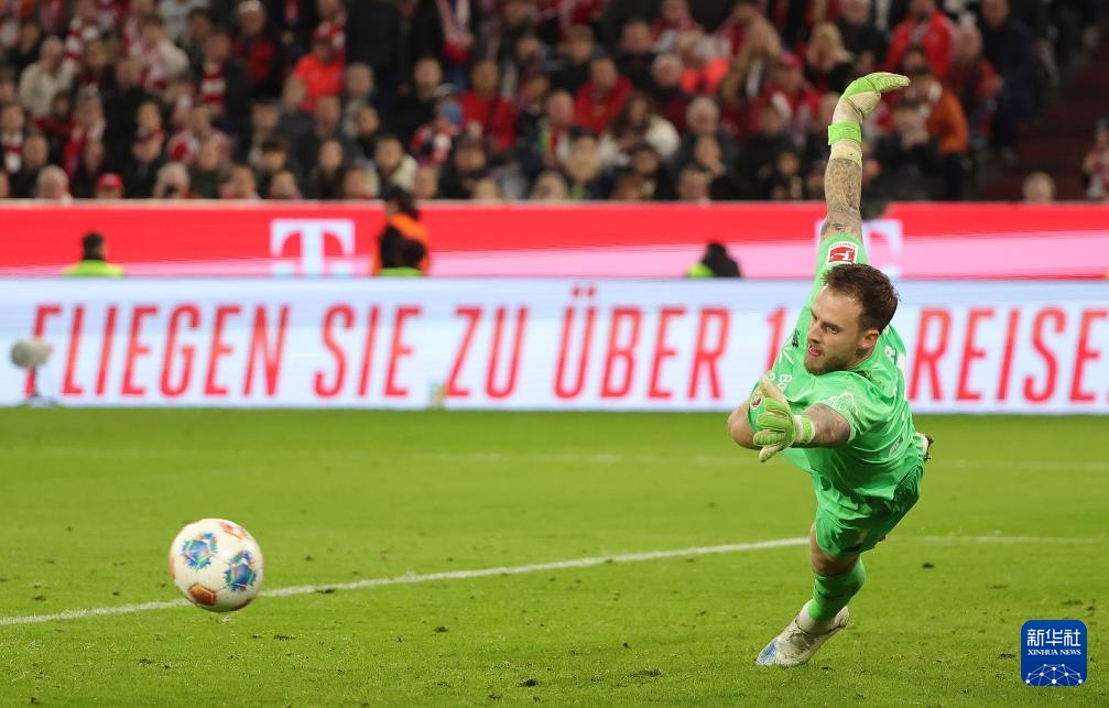 11月1日,拜仁慕尼黑隊球員格納布里(左)在比賽中射門得分。