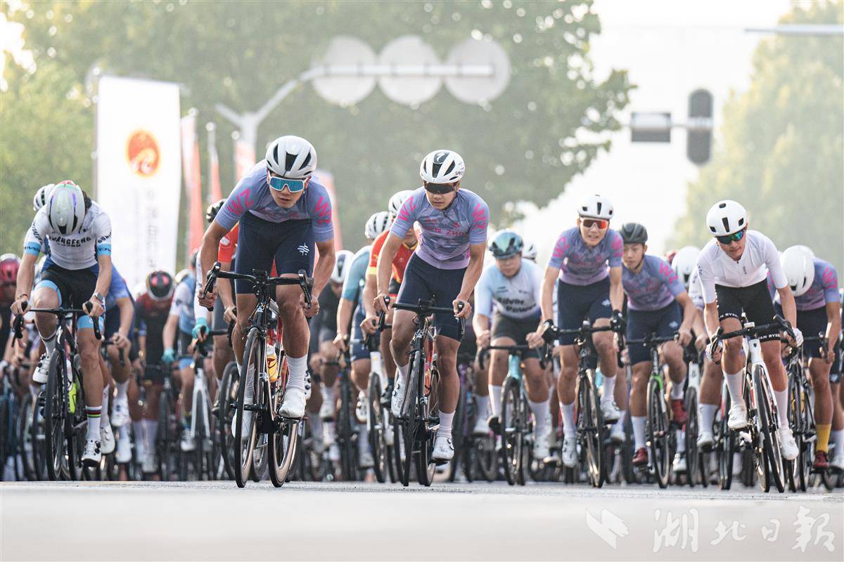 11月2日,在武漢黃陂區空港新城,2025中國青少年公路自行車聯賽(武漢站)青少年男子甲組比賽展開激烈爭奪。(湖北日報全媒記者 任勇 通訊員 黃宣 攝)