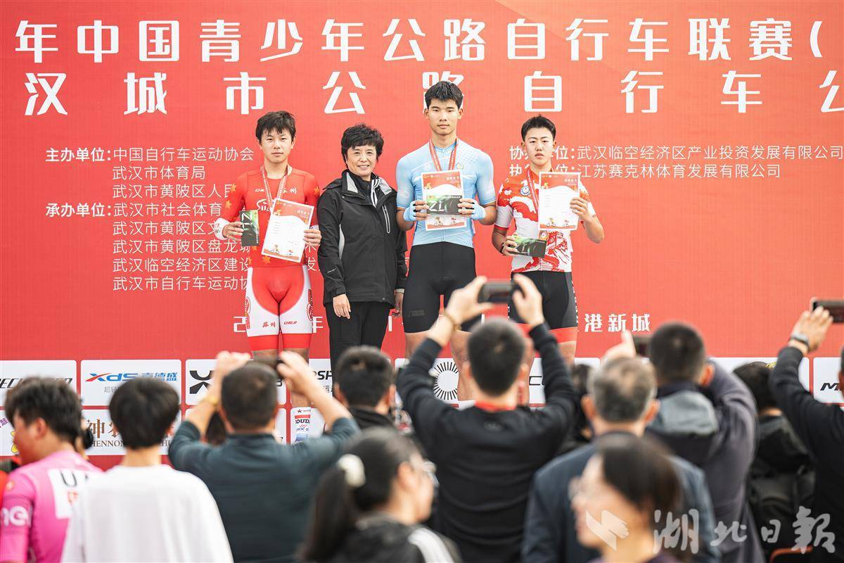 來自鳳凰FNIX眾贏青訓隊的關智鍇(右二)憑借最后階段的沖刺,奪得青少年男子甲組個人賽冠軍。(湖北日報全媒記者 任勇 通訊員 黃宣 攝)