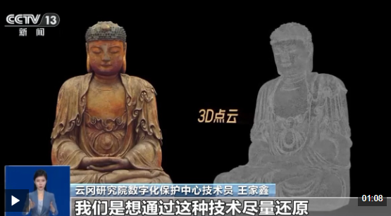 云岡研究院數字化保護中心文博館員 李麗紅:我們是基于三維高光譜這種技術會對該洞窟的色彩進行研究分析,后期會建立洞窟的光譜數據庫和顏料色彩光譜庫,以及病害的數據庫。對于三維信息以及三維高光譜,后期會建立全息數據檔案,為后期保護研究提供一些數據支持。