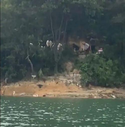 視頻顯示,有人在一處陡坡上將不少貓從籠中放出來。然而,這些受到驚嚇的貓咪并未全部奔向山林,反而在慌亂中紛紛從陡坡沖下,跳入寬闊的水庫。有的貓試圖游向對岸,看上去令人揪心。