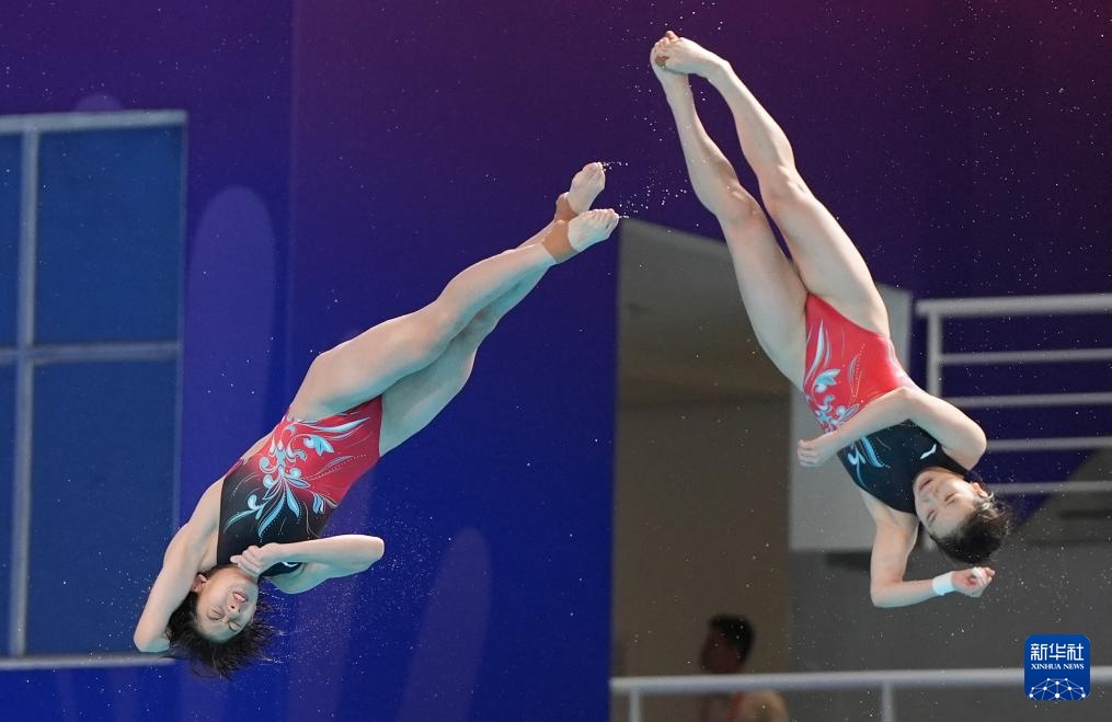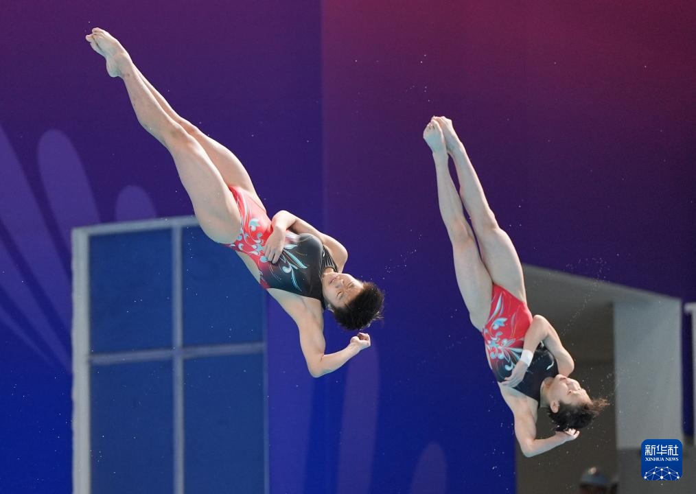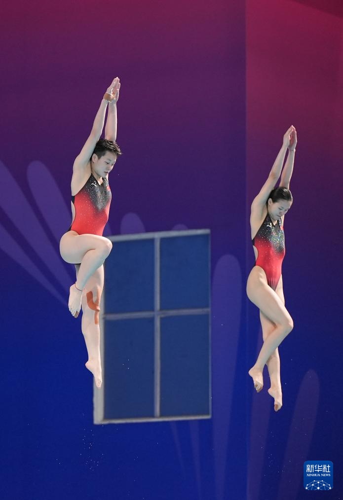 11月2日,陜西隊組合龍藝萍/司雅杰在女子團體雙人3米跳板比賽中。