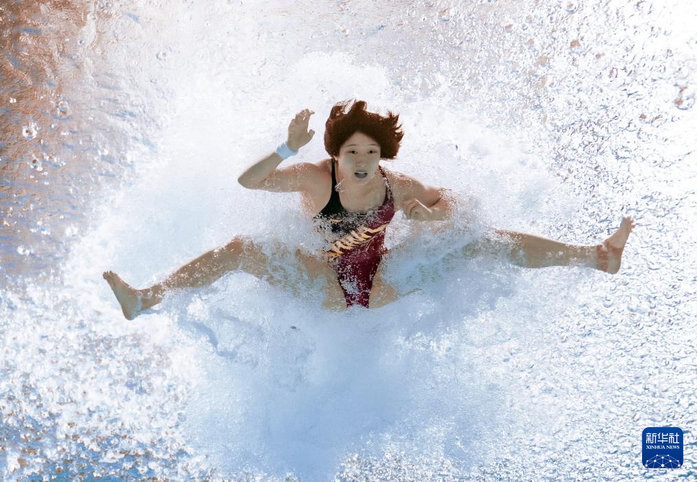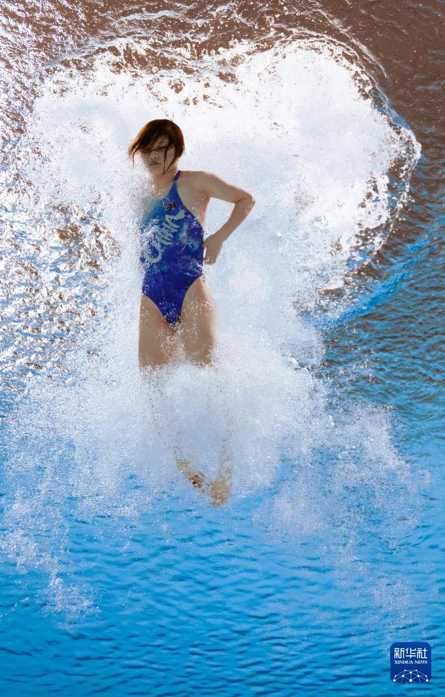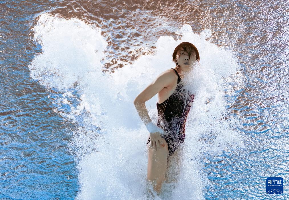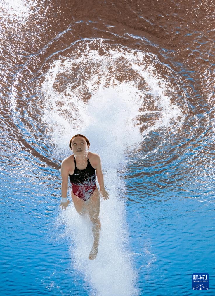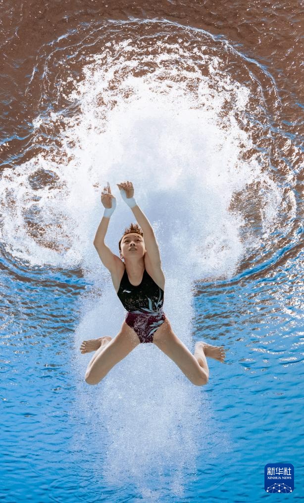 11月2日,廣東隊選手王偉瑩在女子團體10米跳臺比賽中。