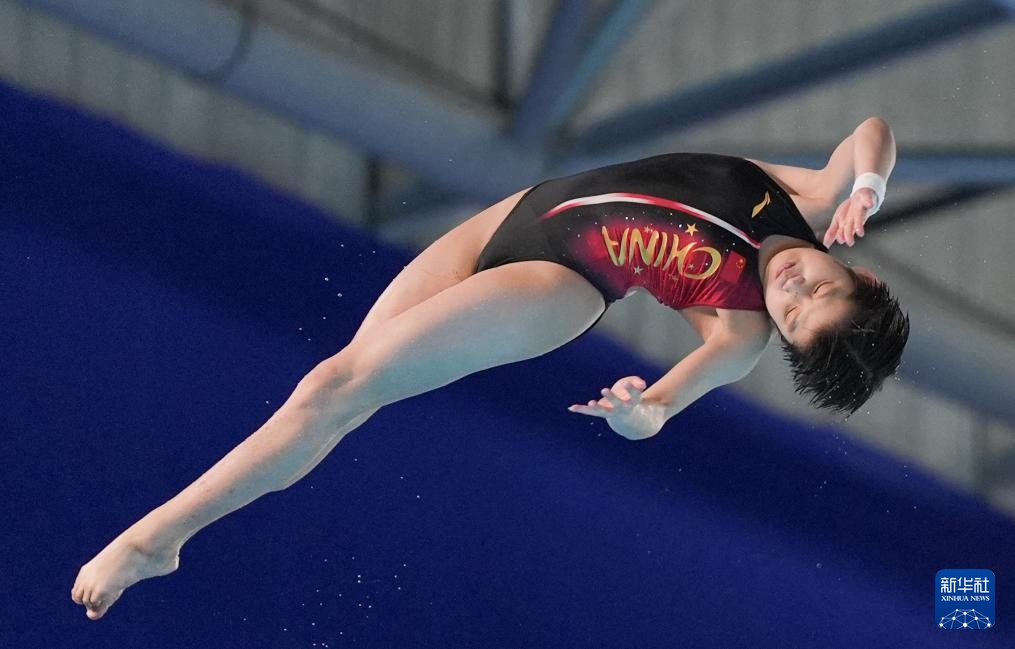 11月2日,北京隊選手苑浩妍在女子團體10米跳臺比賽中。