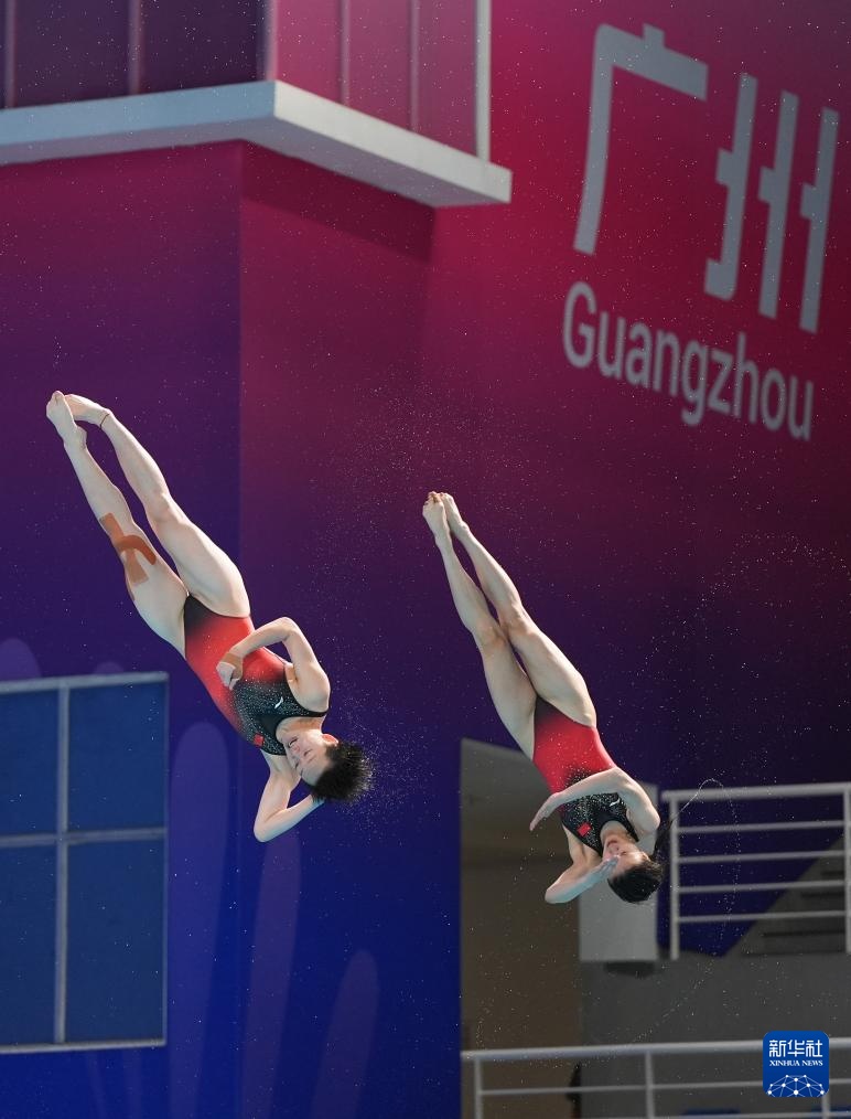 11月2日,廣東隊組合陳藝文/林珊在女子團體雙人3米跳板比賽中。